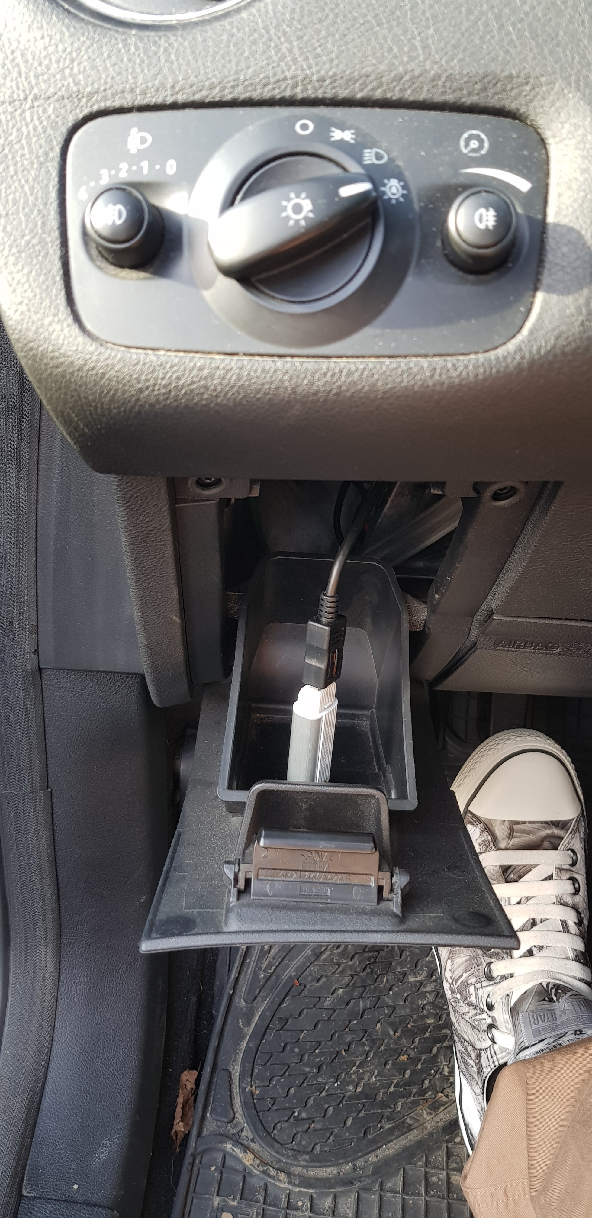 *Achja da ich den USB Port nicht im Handschuhfach haben wollte habe ich ihn kurzerhand in das kleine Fach beim Fahrersitz verlegt.