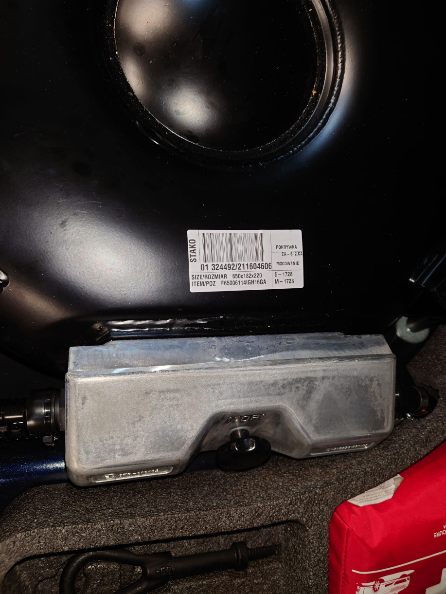 Also... VSI3-DI. Stako F65006114 63 Liter 4-loch radmuldentank. Im praxis fast 50 liter netto. 450-500 km pro Füllung.