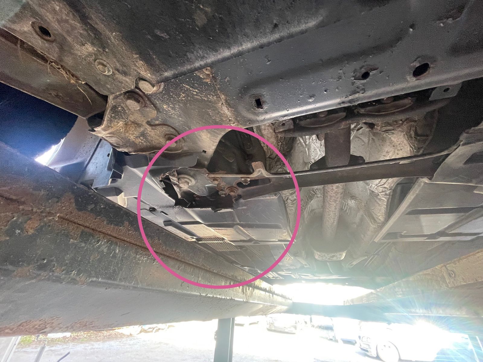 Dann hatte ich glücklicherweise die Gelegenheit, den Wagen kurz auf eine Hebebühne zu fahren. Da habe ich gesehen, dass es die rechte hintere Abdeckung erwischt hat. Hänge zwei Fotos an diesen Post.