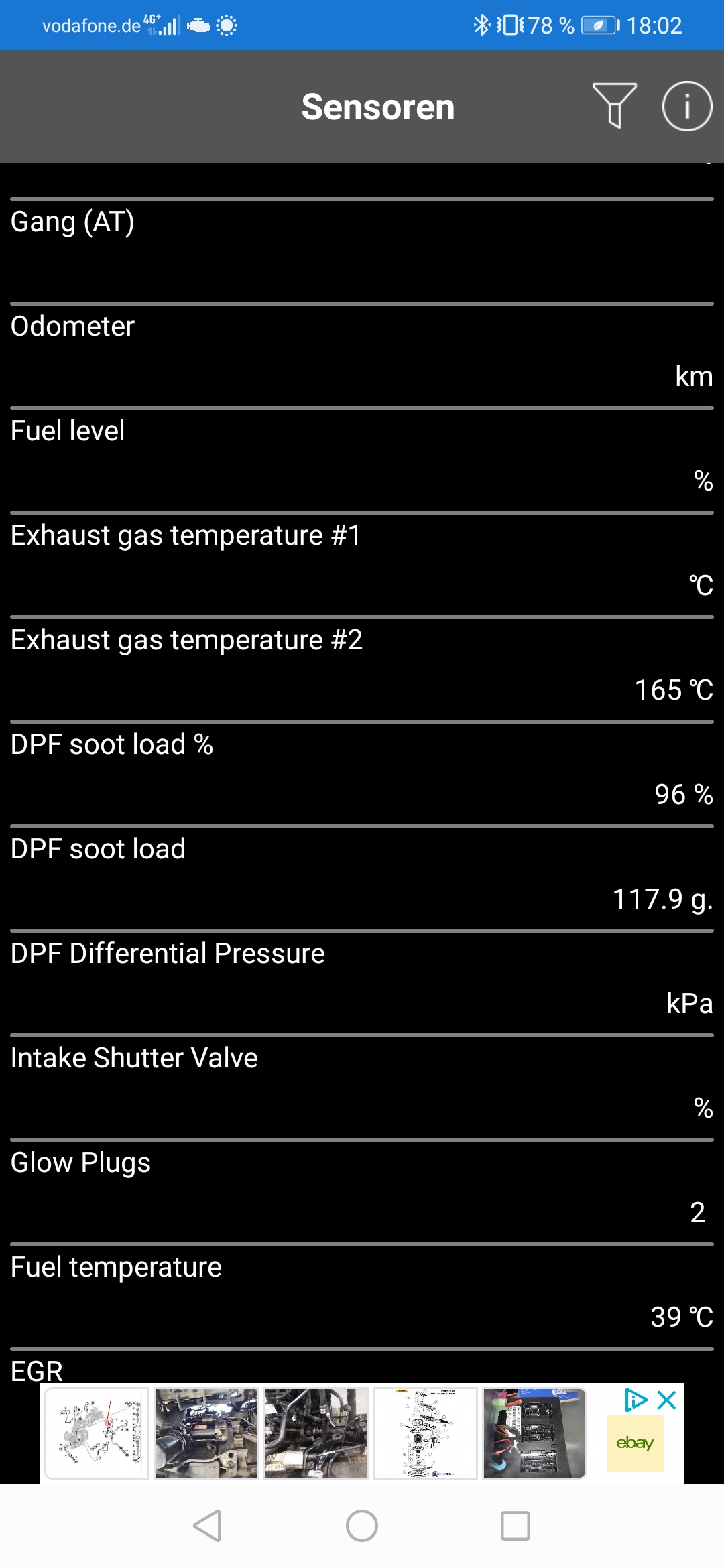 So neuer DPF ist verbaut und habe auch gleich die Temperatursensoren gemessen welcher was ist bei Forscan