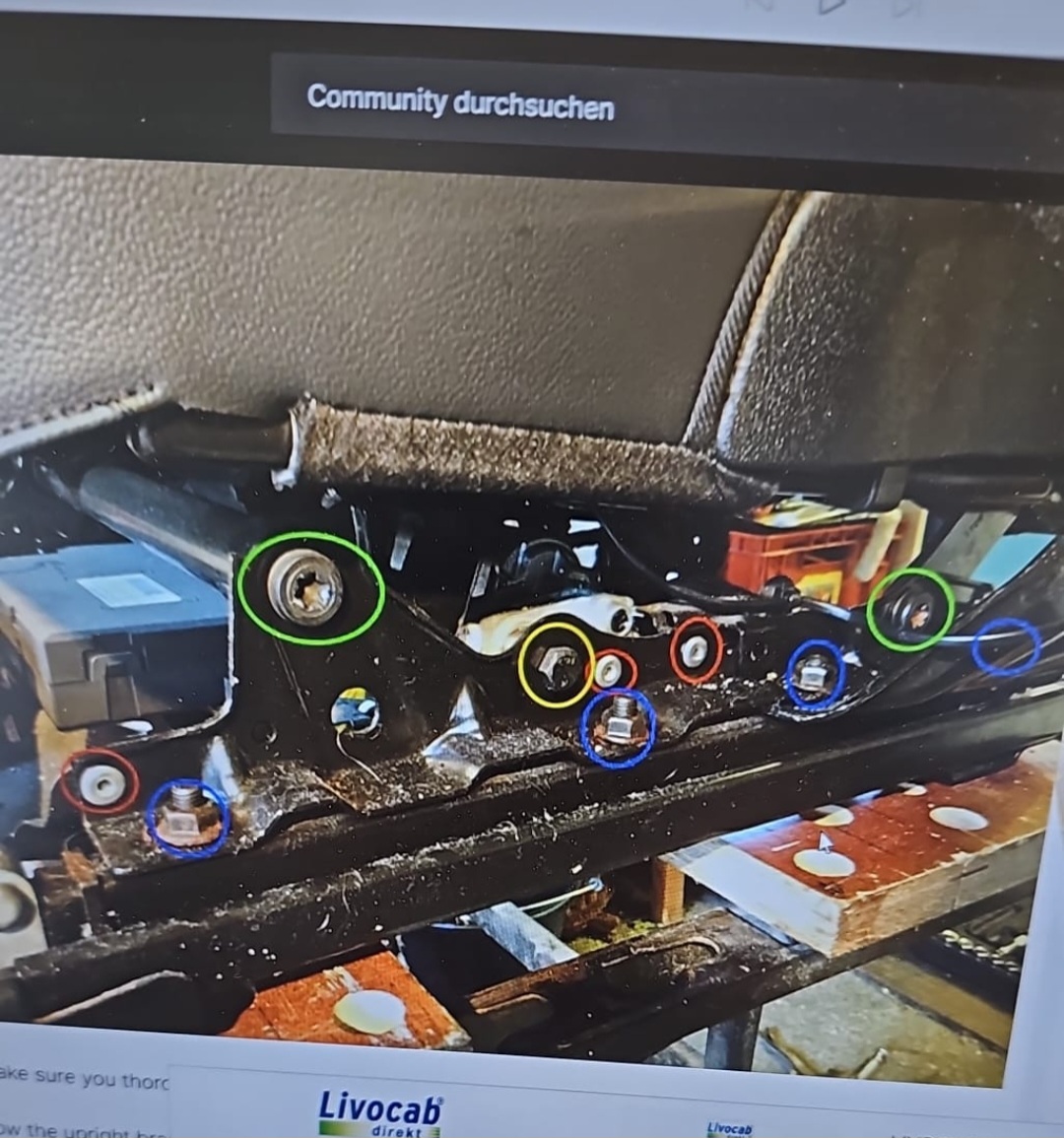 So jetzt hat mich auch erwischt mit den wackelden sitz . Habe gesehen dass die 2 Schrauben hinten Spiel haben von der Höhenverstellung. Hat jemand einen aktuellen Link zu den Buchsen? Eine kleine schraube hat auch Spiel habe ich gesehen muss Mal ein Foto machen