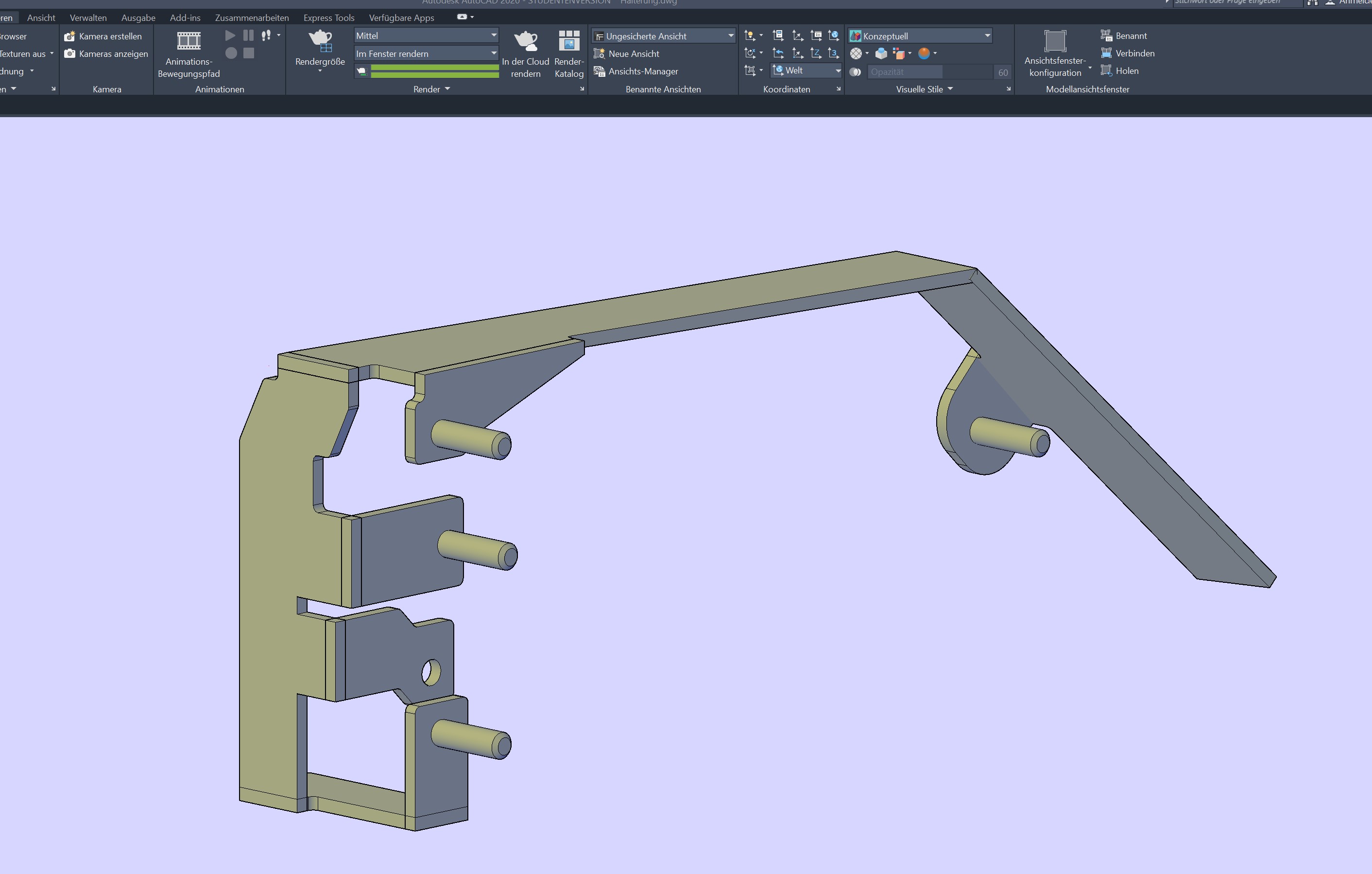 fehlt noch die (in der Zeichnung rechte) eine Halterung, dann steht die Zeichnung. Manche Biegekanten sind noch nicht verrundet, das brauche ich noch, um die "aufgeklappte" Form zu erzeugen. -