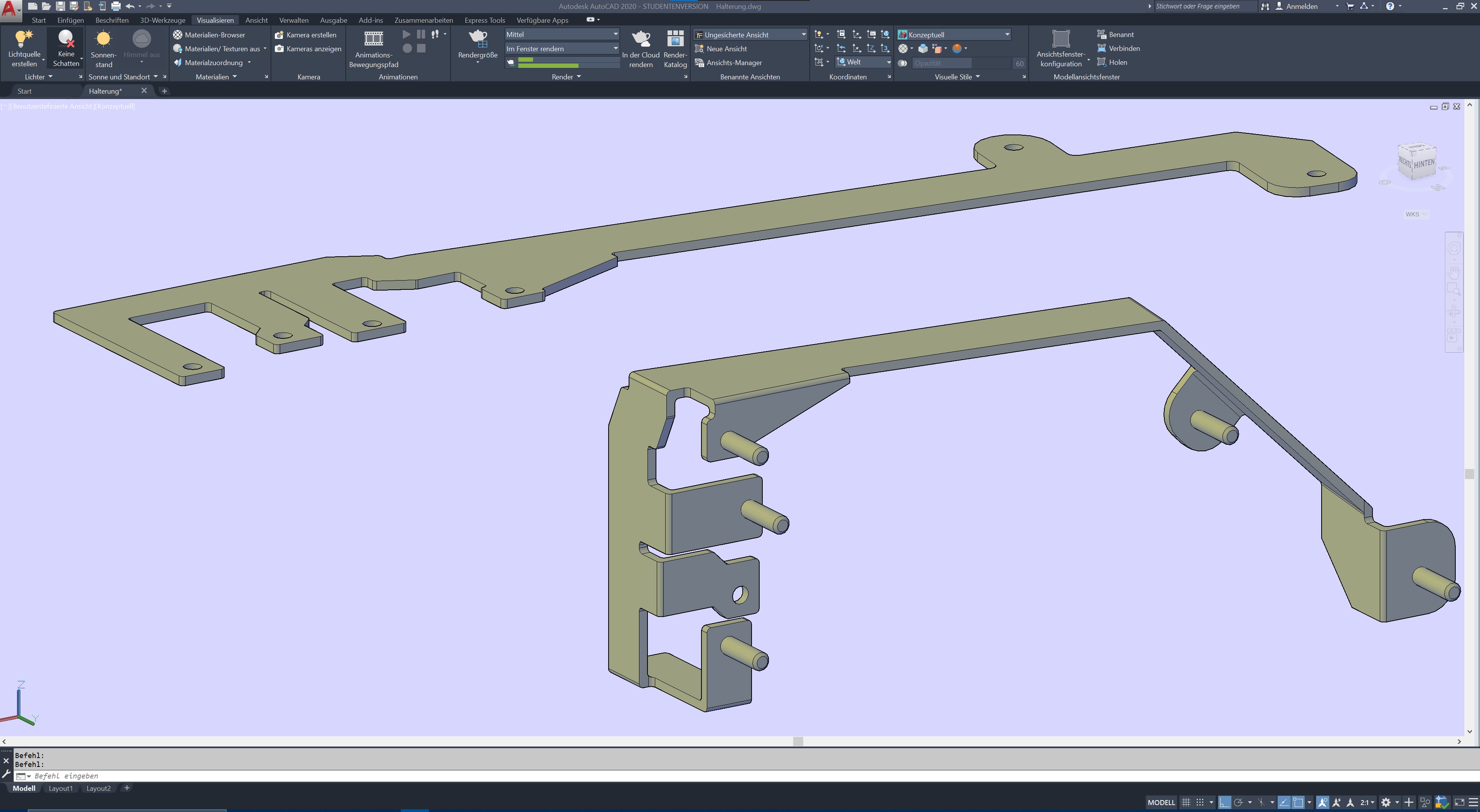 Versprochen ist versprochen. Hier die 3d-Dateien incl. AutoCad-Datei zum Bemaßen. Ganz ehrlich, ich kann mir nicht vorstellen, dass das einer hinbekommt. Das Ding kann man nur in der Stanze biegen. Selbst wenn es jemand auslasert, die Ohren dann so zu biegen, dass alle Löcher für die Bolzen bzw. den Gewindeniet an der richtigen Stelle sind, kann ich mir nicht vorstellen, dass das jemand schafft. Ich jedenfalls betrachte es als CAD-Übung.