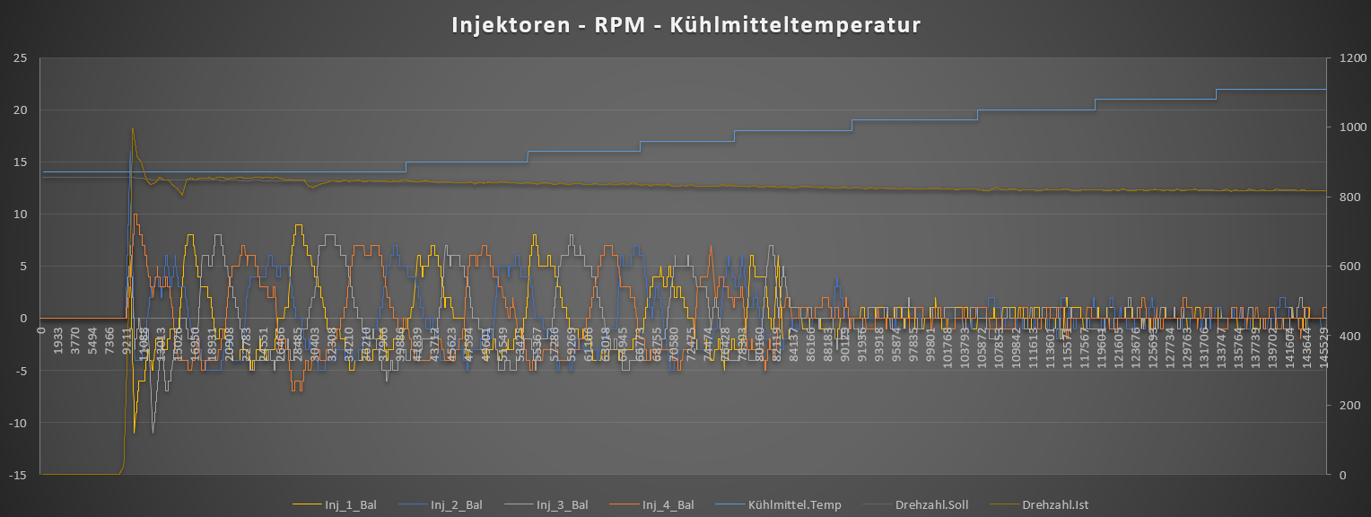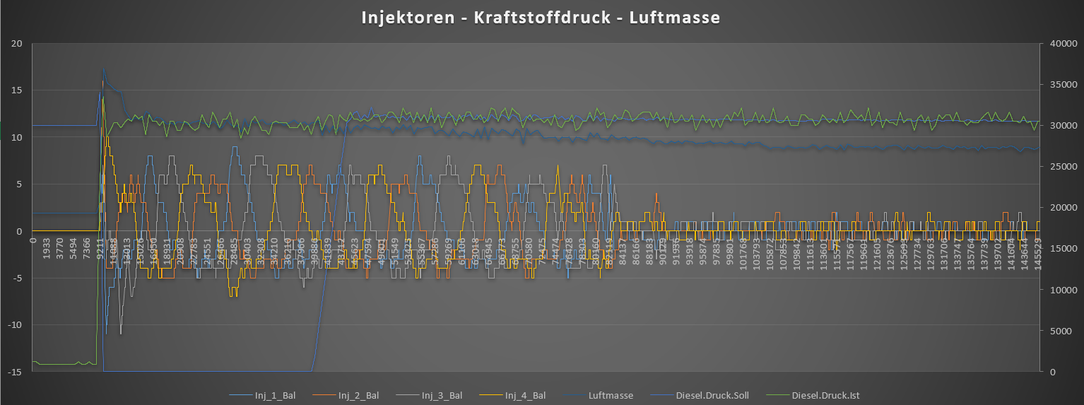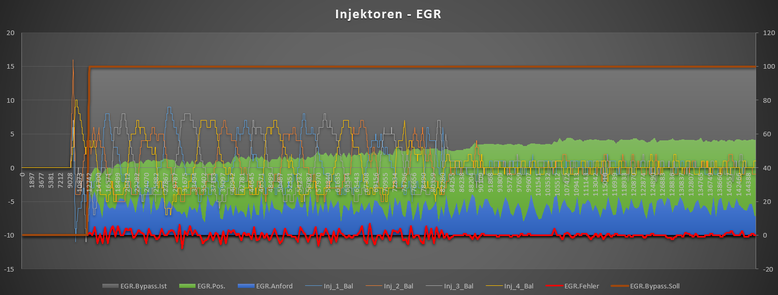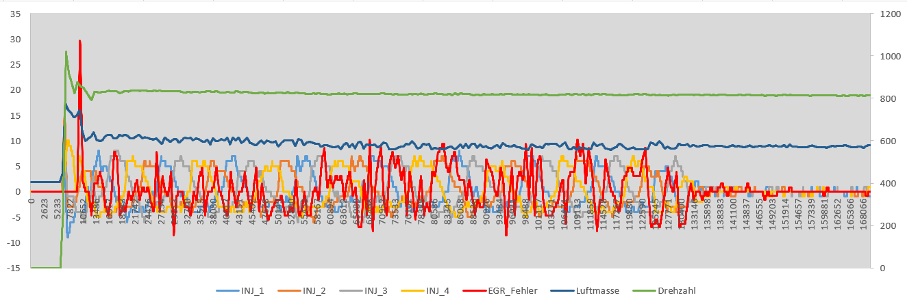 Der EGR-Fehler schwankt bei Kaltstart ebenfalls stark mit. Sobald der Wert sich beruhigt, beruhigen sich auch die Injektorkorrekturen.![]()