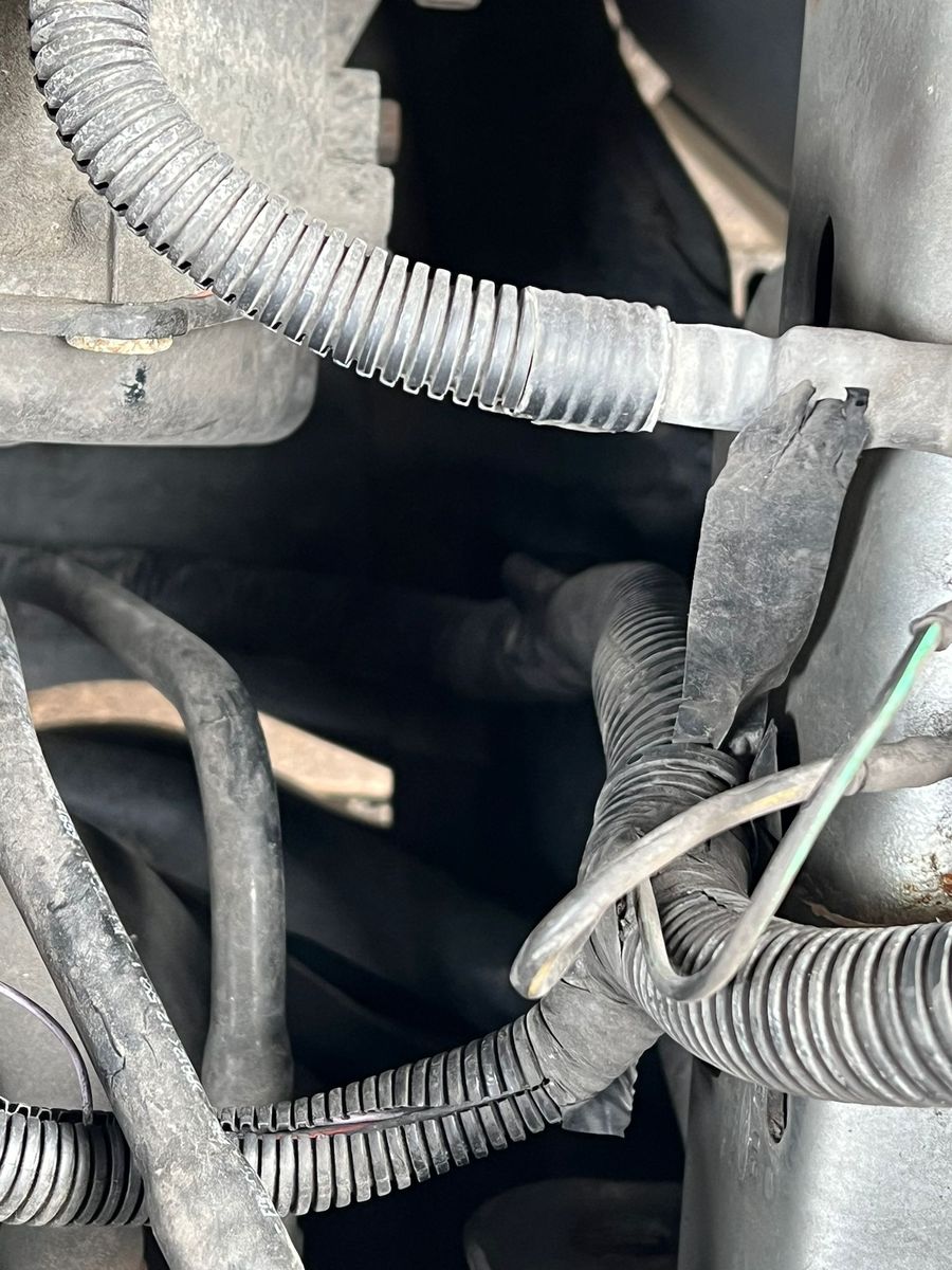 Von der Lüftersteuerung bis zum 1 T-Stück ( oben rechts ) habe ich geschaut und Zugtest gemacht---- Kabel scheint in Ordnung zusein...keine Dehnung oder Riss...Dann ist unten auf dem Träger das nächste T-Stück...