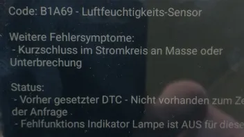 Code: B 1 A 69 -Luftfeuchtigkeitssensor Kurzschluss im Stromkreis an Masse oder Unterbrechung