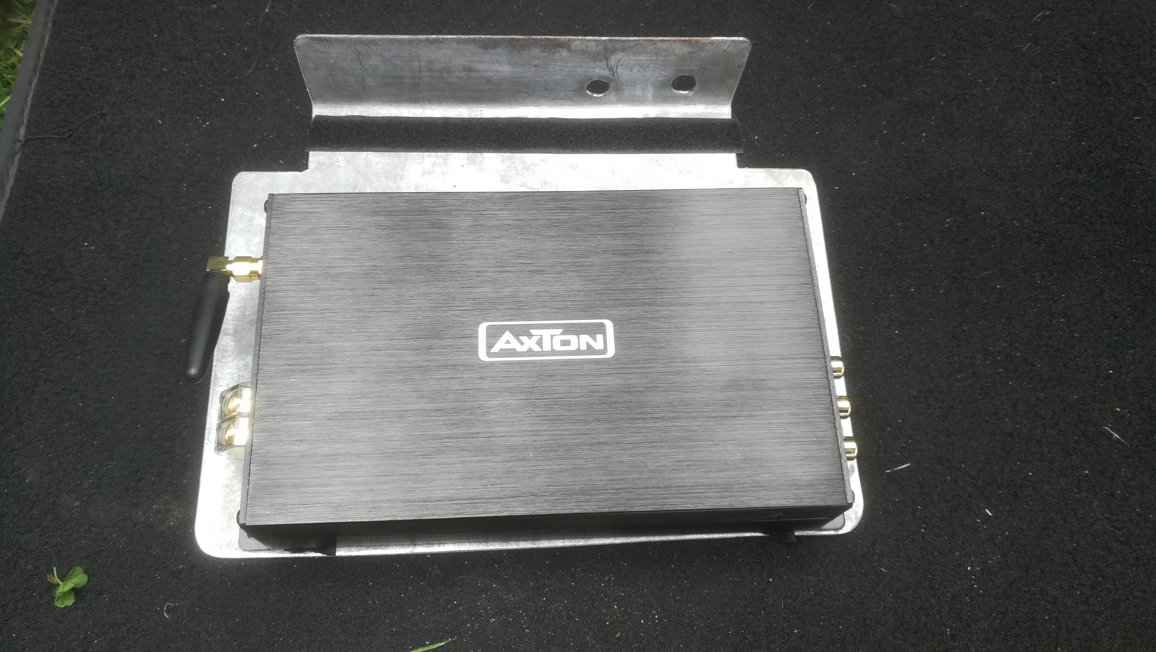 Quertraverse über dem Handschuhfach montiert und darauf die Endstufe.Chinchkabel zum Subwoofer und Test.