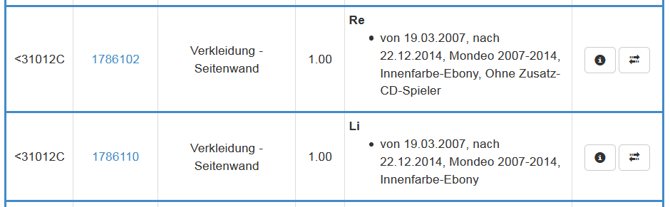 Ich meine mich zu erinnern, dass die Seitenteile L+R (beflockte Presselemente) von Anfang bis Ende gleich waren, wenn die Farbe stimmt. War meist "Ebony" was Schwarz / Anthrazit ist.