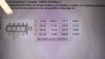Zu jedem Injektor habe ich jeweils zwei zusätzliche Codes erhalten, sollte die Korrektur entweder im Plus oder Minus liegen.