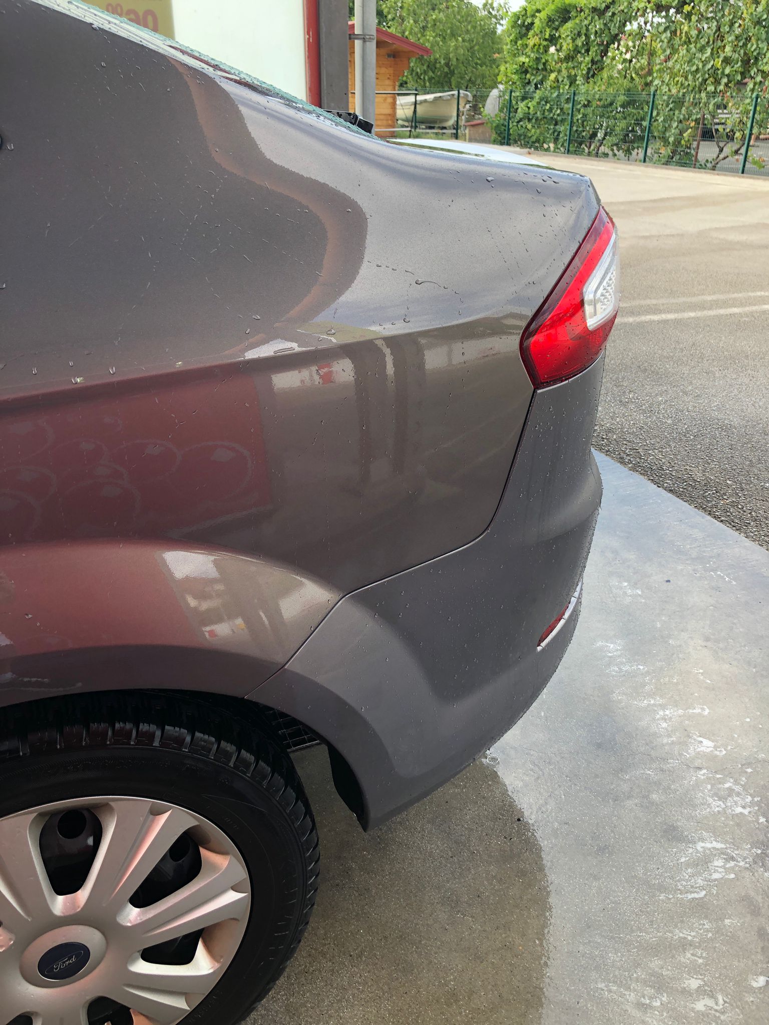 Mein Mondeo wurde vor einiger Zeit auf nem Parkplatz angefahren und da ich bald auf Urlaub fahren musste, bin ich direkt zum Ford Händler in meiner Stadt gefahren welcher dann das Auto repariert hat. Der Schaden war ein Loch in der hinteren Stoßstange, sowie eine Delle und ein leichter Kratzer im rechten Kotflügel. Also nichts schlimmes. Innerhalb von nur einer Woche waren die Teile da und ich die haben nur einen Tag gebraucht um den Kotflügel, sowie Stoßstange zu lackieren und reparieren, wobei letzteres auch getauscht wurde.