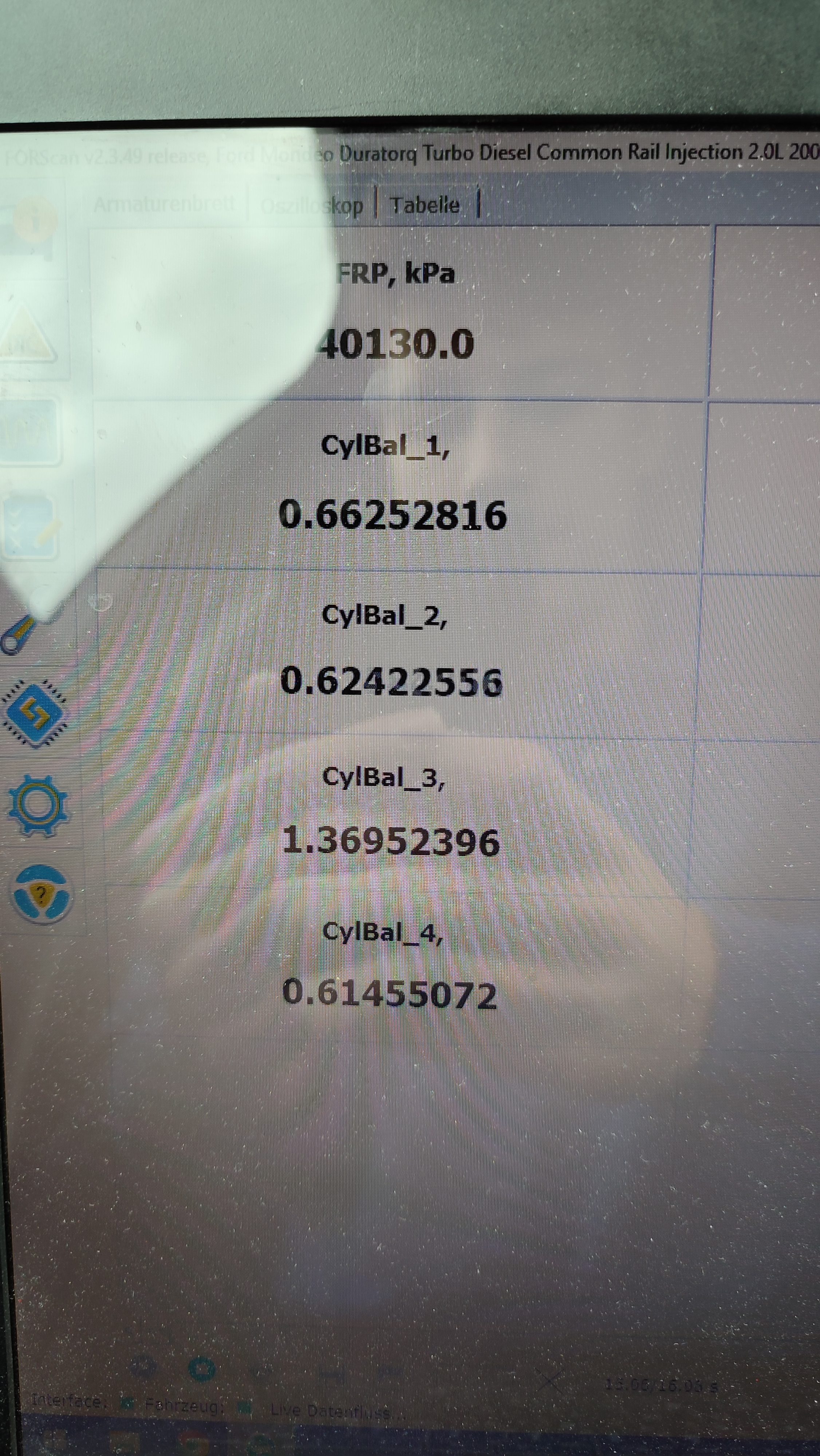 In Forscan messe ich bei Zylinder 3 andere Werte als bei den anderen bei Zylinderbalance (siehe Bild). Injektor 3 und 4 habe ich daraufhin getauscht aber der "Fehler" ist nicht mitgewandert.