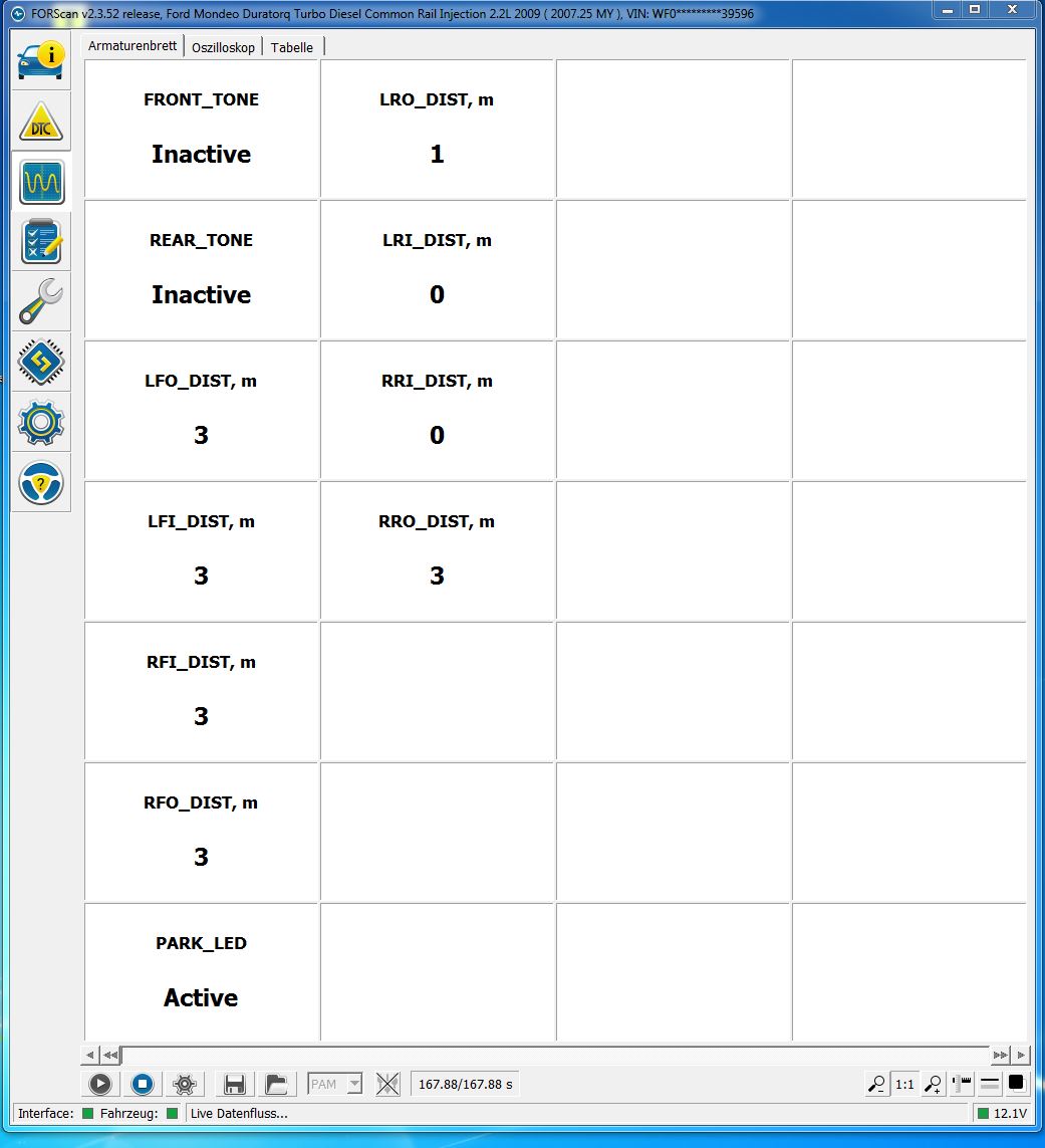 Wenn hier schon ein Sensor unter 3m zeigt ist das PAM defekt, die Sensoren selbst sind noch Spannungslos (Park_LED Inactive).