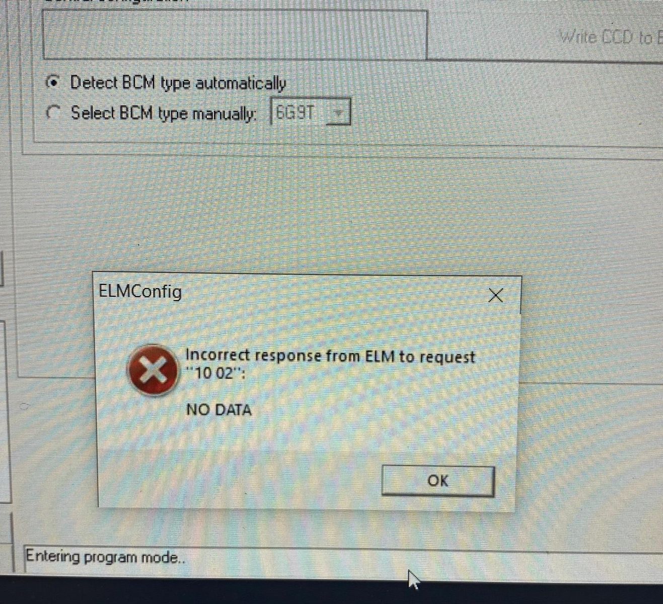 Beim Versuch, die CCC vom BCM ins IPC zu kopieren, hab ich von ELMConfig die Fehlermeldung: "Incorrect Response from ELM to request - "10 02": NO DATA