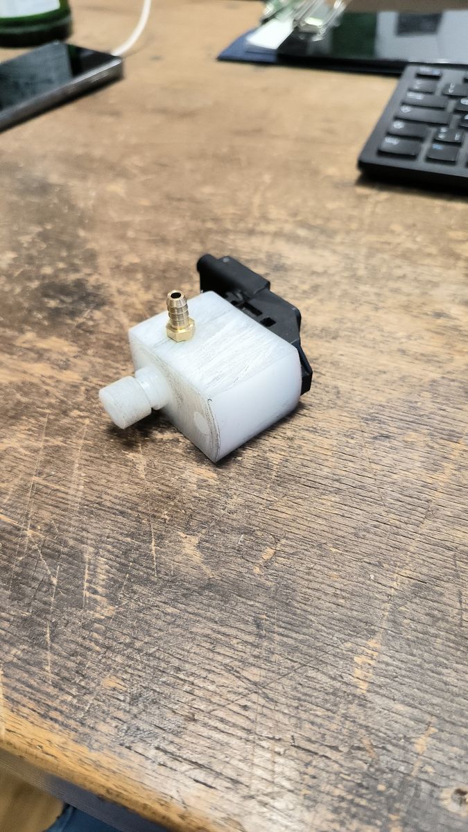 Also wurde selbst ein Adapter gebaut, aus POM , welches entsprechende Materialeigenschaften aufweist, die nötig waren. Aluminium wäre natürlich auch gut, aber war gerade nicht zur Hand.