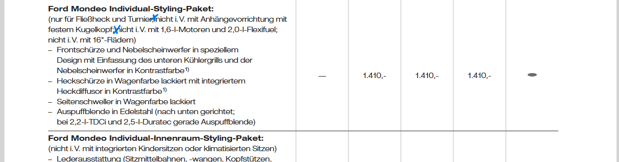 Jetzt ist mir kurz vor Weihnachten ein Mondeo Turnier MFL mit 163PS und PS (die nach 400tkm sogar noch sehr gut funzt) und fast neuen Turbolader recht günstig zugelaufen. Habe den eigentlich bloß gekauft, weil der alle Individual-Pakete hat und sonst fast volle Hütte, sogar beheizbare Rücksitze und Alarmanlage. Der wird aber wegen div. Mängeln von mir nicht mehr getüvt.