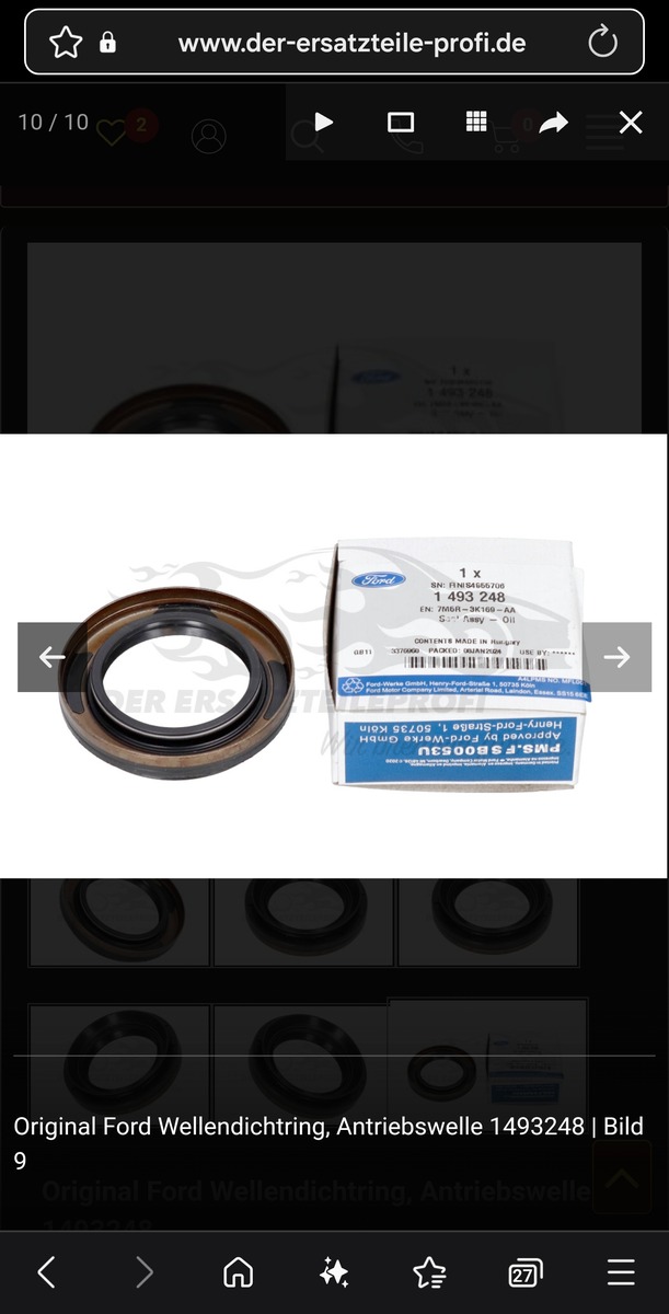 Anschließend war ich beim zweiten Ford-Händler. Der hat mir dann ebenso die Wellendichtringe rausgesucht (ohne verwirrt zu sein), jedoch durfte er mir die Teilenummer oder ein Angebot nicht aushändigen.