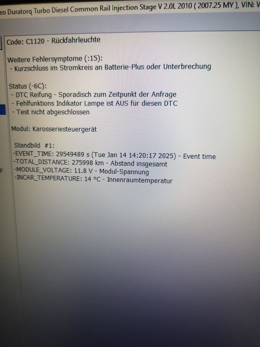 Forscan hat tatsächlich einen Kurzschluss im Stromkreis der Rückfahleuchten erkannt.