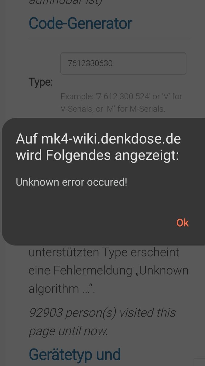 damals sagte man mir, man kann nichts machen, da muss das Gerät ausgebaut werden (bei mir gab es auch keinen Pin-Code vom Vorbesitzer dazu). Nun habe ich mich seitdem nicht nicht mehr beim FFH gemeldet. Jetzt wollte ich mir selber den Code mithilfe des hier entwickelten Rechners generieren, aber scheint bei mir nicht zu funktionieren.