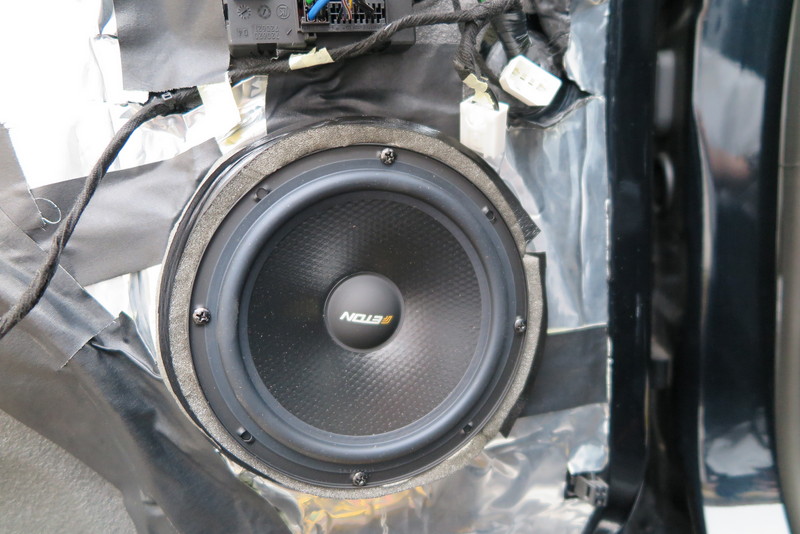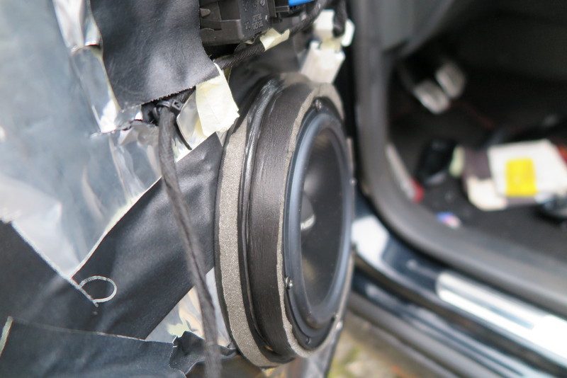 Der Tieftöner hat jetzt noch ca. 15mm Luft bis zur Türverkleidung. Evtl. schließe ich den Spalt noch.