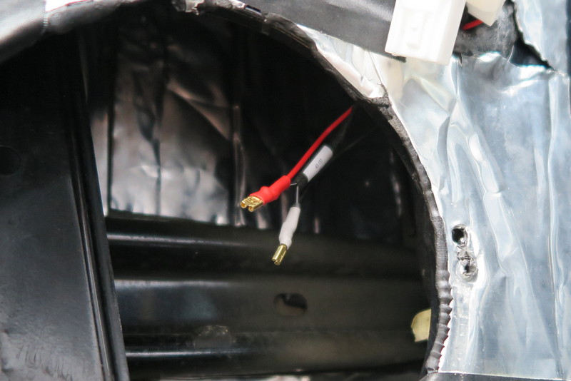 Die Kabelenden hab ich durch die Gummitülle des Kabelbaumes oberhalb des Woofers durchgesteckt.