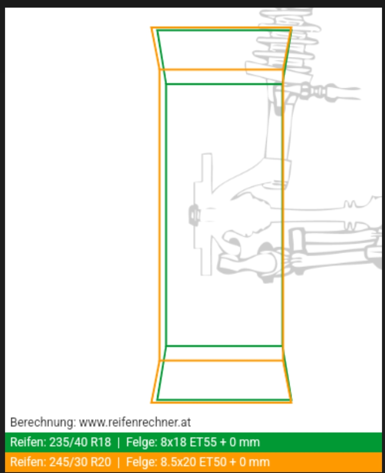 Info: Ein Kumpel fährt auf seinem 2,5er 235/45 18 auf den Serien 8x18, mit et55. Er musste (für unseren TÜV) LEBs verbauen. Und der Tacho gaukelt ihm bei echten 100Km/h nur 92km/h vor.