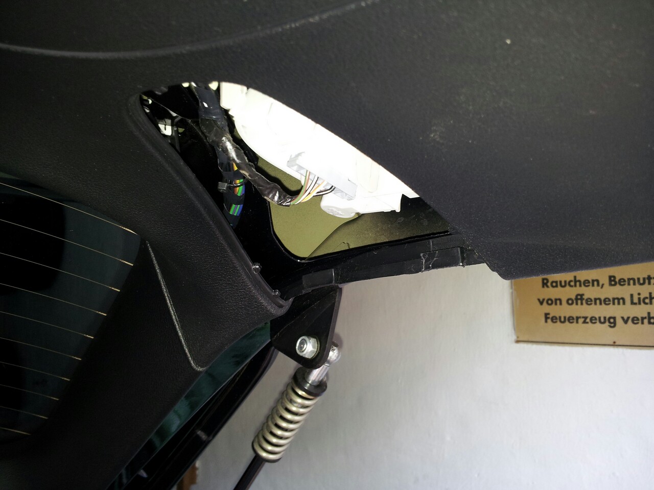 Beim vFL müsste nochn Kabel von der Deckenbeleuchtung dahingelegt werden- auch kein Problem.Aber beim Öffnen der Montageklappen stellte ich bei meinem vFL eine fast nicht vorhandene Einbautiefe fest.