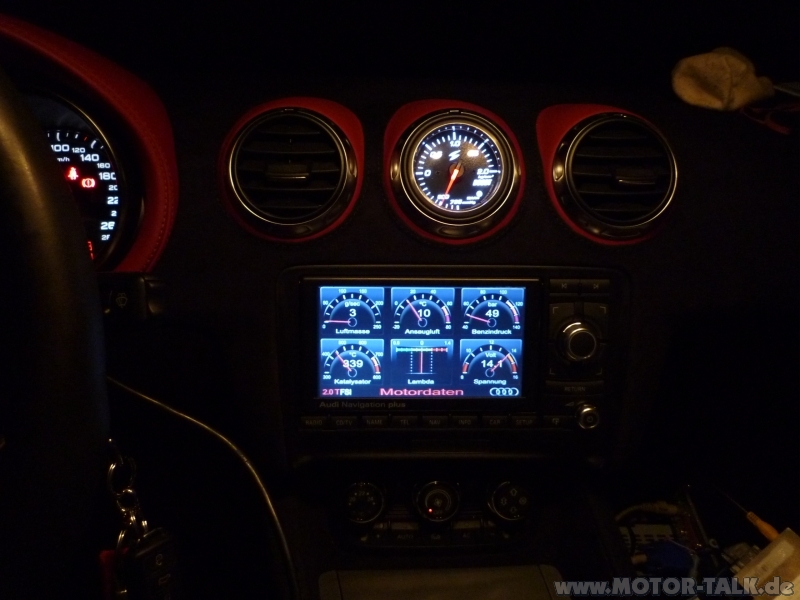 Jo, Zusatzinstrumente würden den stylischen Innenraum unserer Mondis doch arg verschandeln. Hab da im TTS- Forum ne interessante Lösung gefunden, da hat ein User doch tatsächlich die Visualisierung der Instrumente in den RFK- Eingang der Navi- einheit eingespeist: