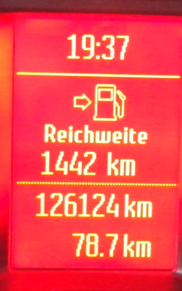 Ich freue mich hier oben gerade über den Verbrauch vom Paul. Nach unserem Ausflug zum Königsstuhl auf Rügen habe ich ihn an der Aral in Bergen wieder voll getankt. Nach den restlichen 78km wurde mir ein Durchschnittsverbrauch von 4,5l/100km und eine Gesamtreichweite von über 1500km angezeigt!!!! volldolllol