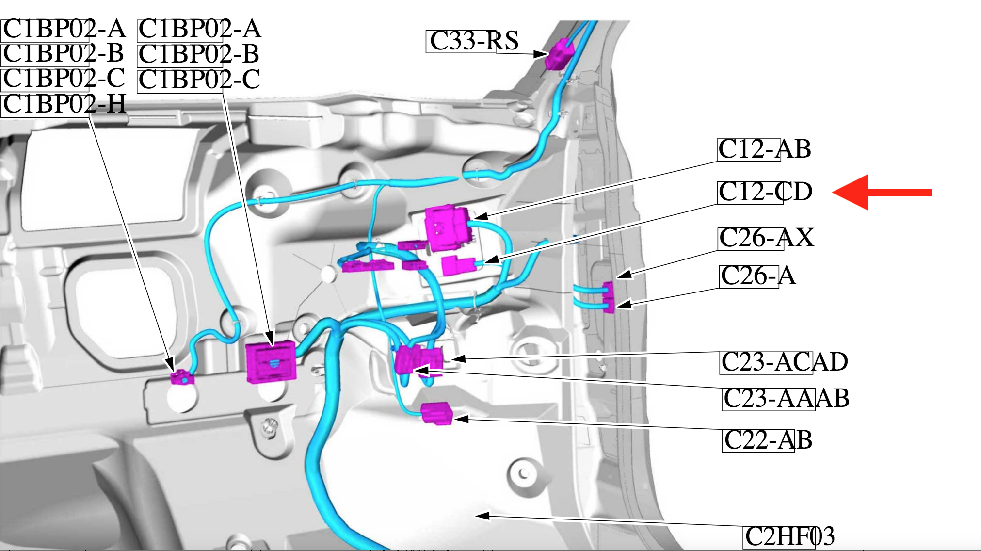 You search the first connection point for the wire for the F20 fuse