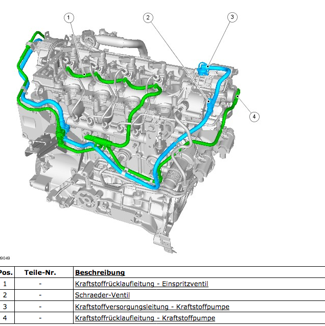 Die Kraftstoffleitungen Vor und Rücklauf sind in drei Abschnitte unterteilt und mit Schnellkupplungen verbunden.
