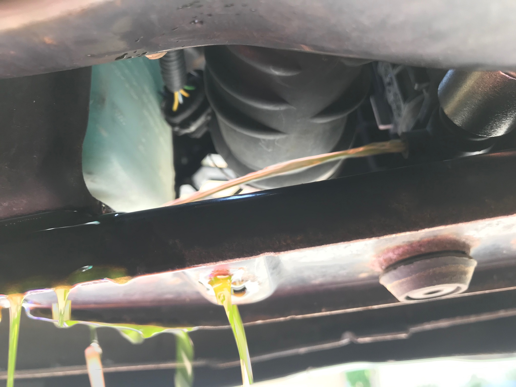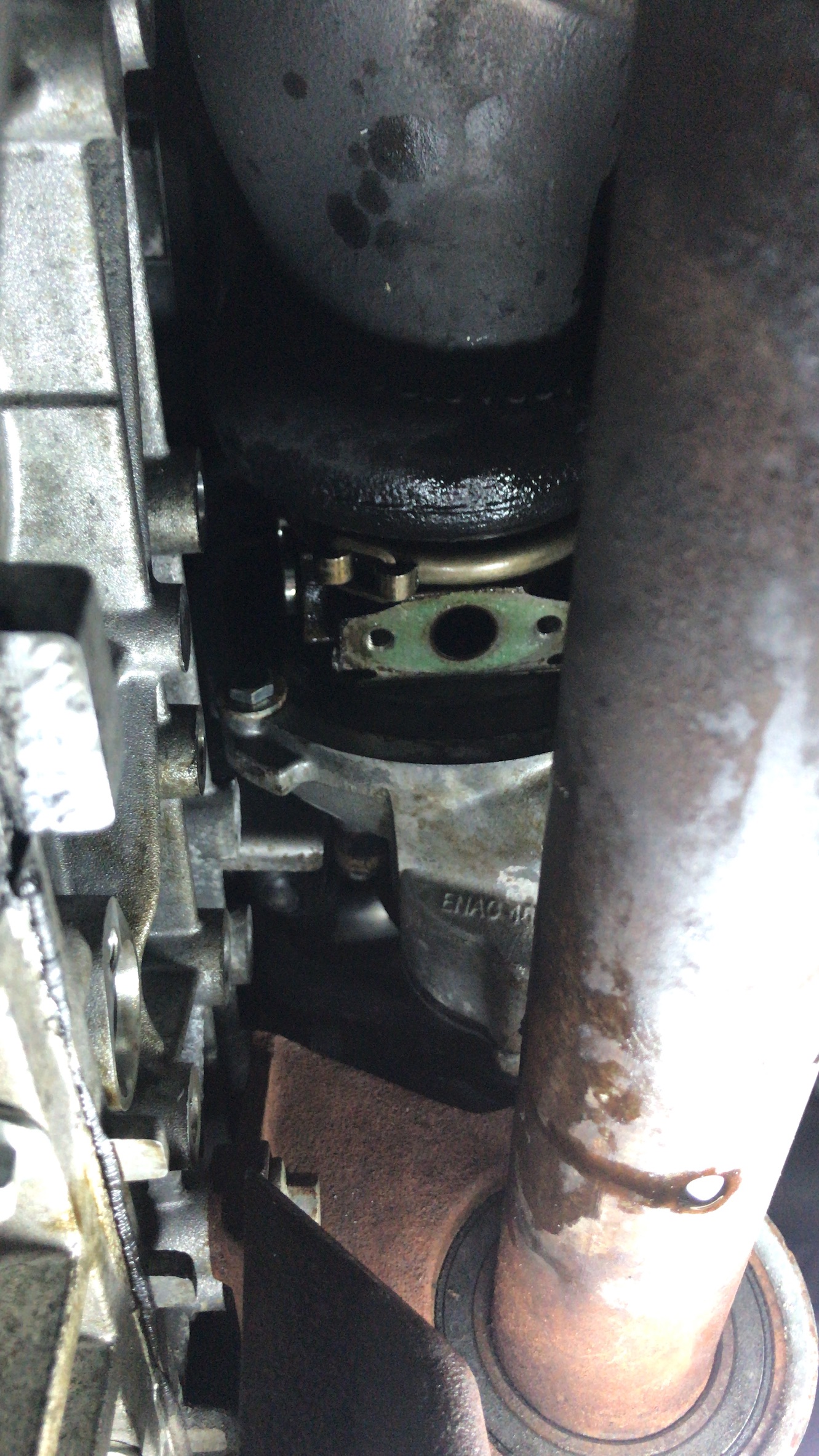 Was war passiert?! Dichtung der Ölrückführung vom Turbo in die Ölwanne undicht. Alle 4 Liter Öl auf dem Werkstattboden