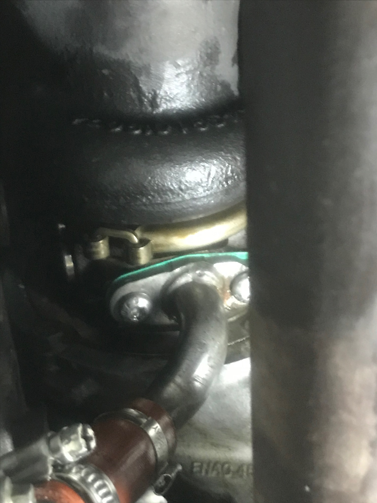Heute ging es weiter. Nach langen hin und her hatte ich endlich die Papierdichtung für die Ölablaufleitung vom Turbo. Also ab in die Werkstatt und auf die Bühne. Dichtung gewechselt und Motor gestartet. Öl lief wieder raus. Mist. Also Fehlersuche. Luftzufuhr abgebaut, Kühlleitungen vom Turbo weg, Hitzeblech vom Krümmer ab. Motor gestartet. Siehe da!!!!. Ich Arschloch hatte die Zulaufleitung nicht festgezogen