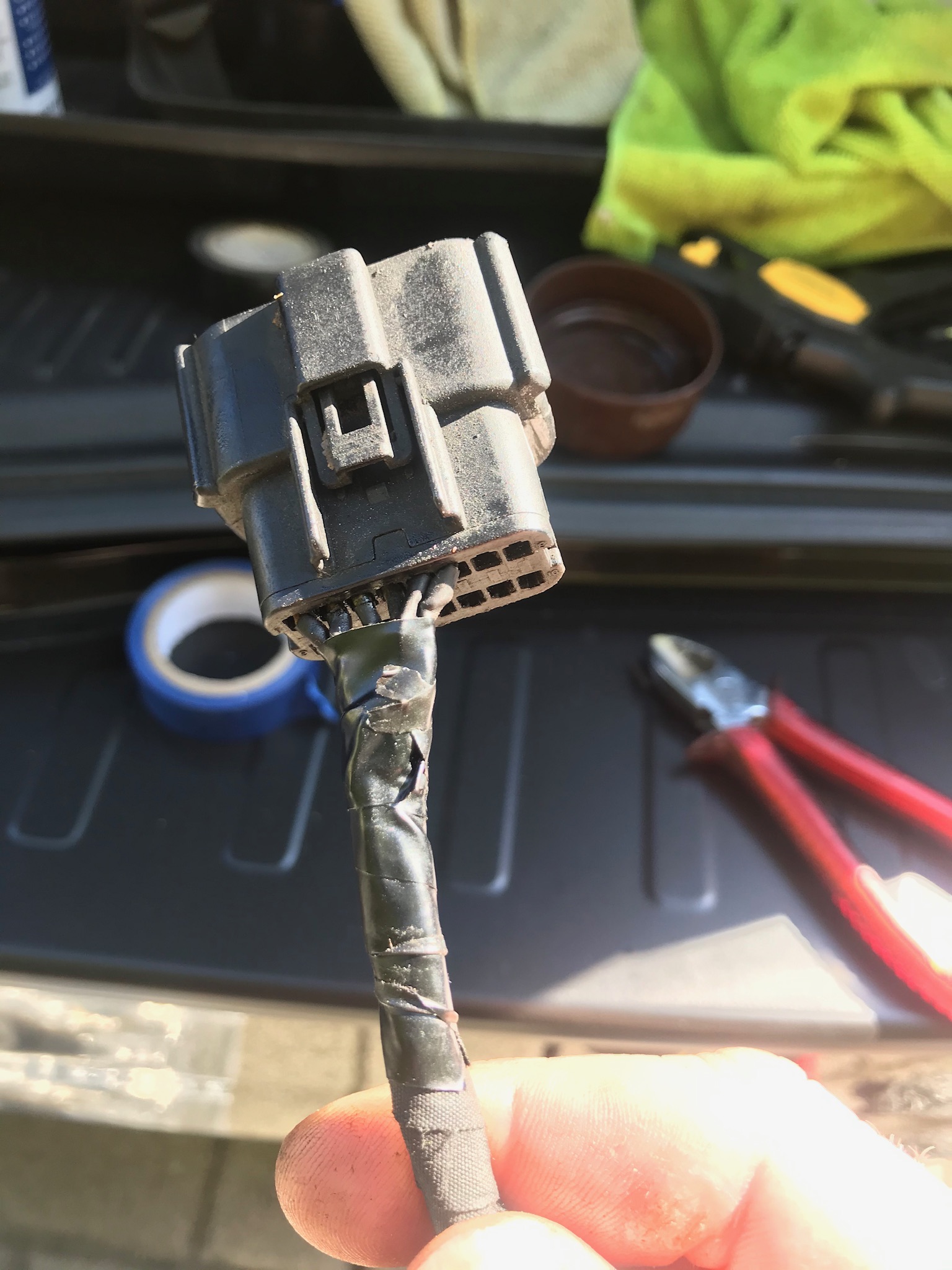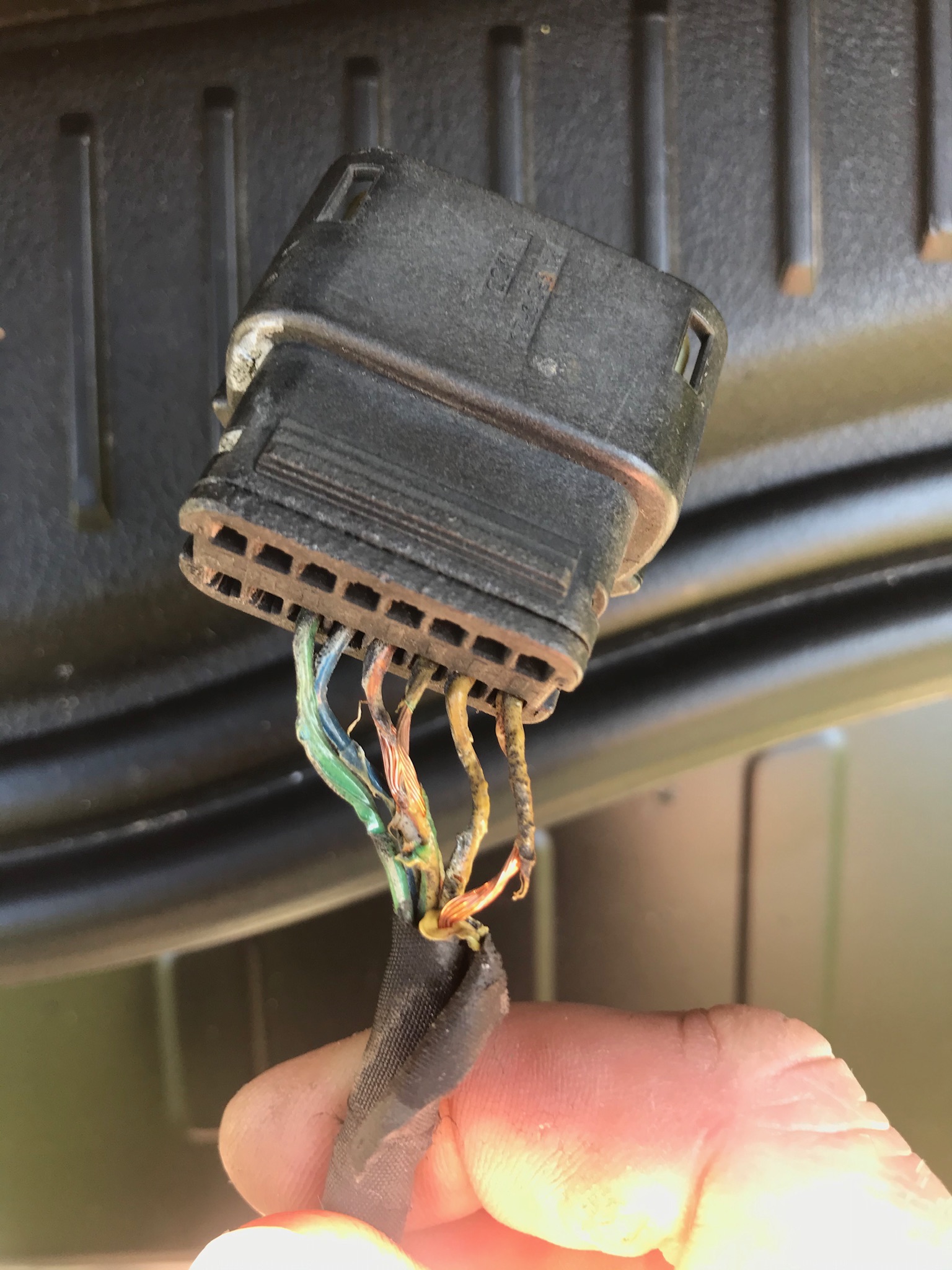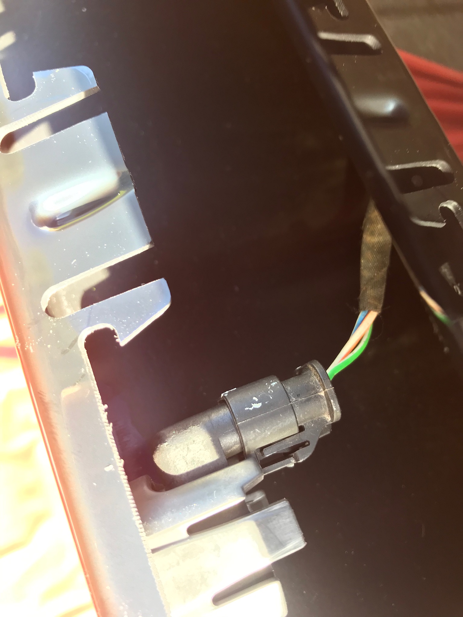 Und da dachte ich das war es Nö. Den Stecker hat’s auch erwischt. Alle Kabel die Isolierung geschmolzen. Also durchgeschnitten, neu verlötet und Schrumpfschlauch drüber. Und dann sollte gestern der Diffusor kommen, nein was macht der Händler? Falsches Teil schicken, so ein Miko Teil vom Focus.