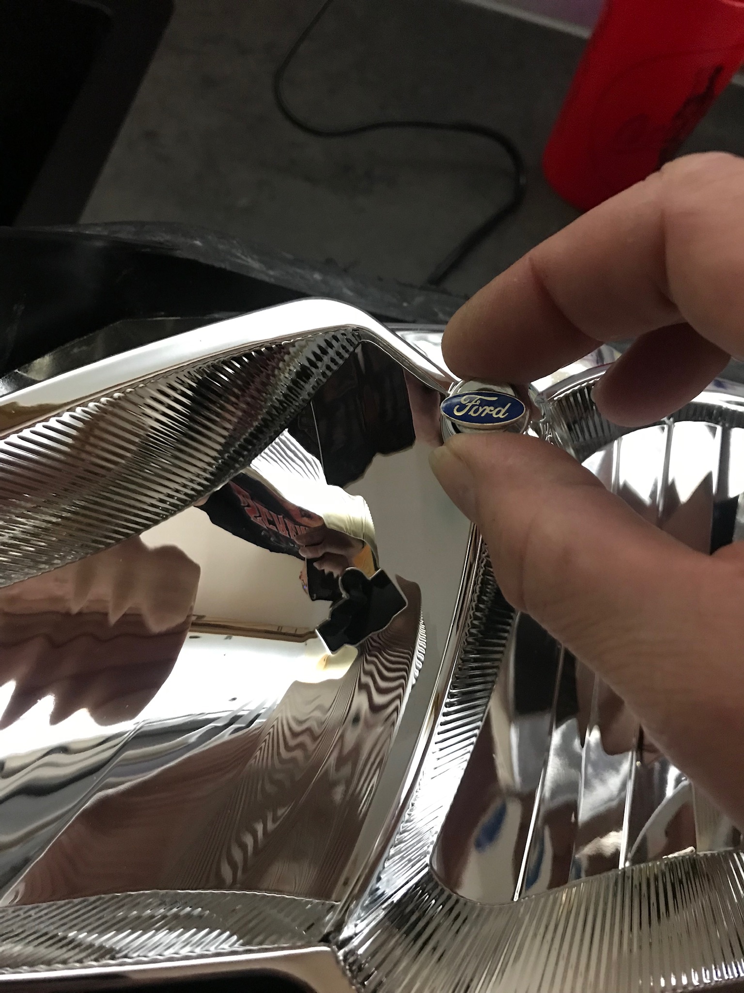 . Dann noch die FordPin gebastelt und verklebt an der Stelle vom Standlicht. Am Nachbau merkt man dann doch die preiswerte Verarbeitung. Die Blinkerschale lies sich nicht mehr korrekt befestigen und mußte mit Sekundenkleber fixiert werden. Nächste Woche mit Kreppband die Scheibe abkleben und mit Sikaflex den Scheini wieder verschließen.