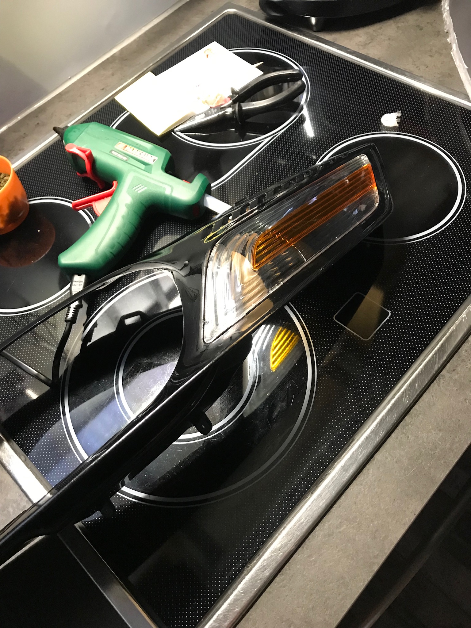 Da habe ich auch nur geklebt. Im Keller habe ich den Scheinwerfer geöffnet und lackiert. -