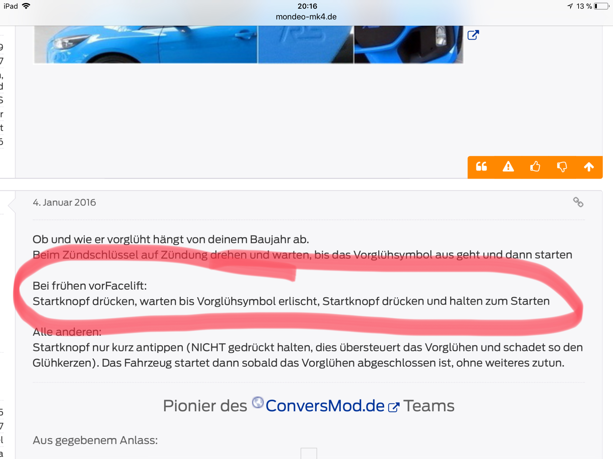 Wurde ja schon einmal besprochen vFl drücken, glüht vor und starten. FL einfach drücken und Auto macht den Rest. Einfach mal rückwärts in dem Thread