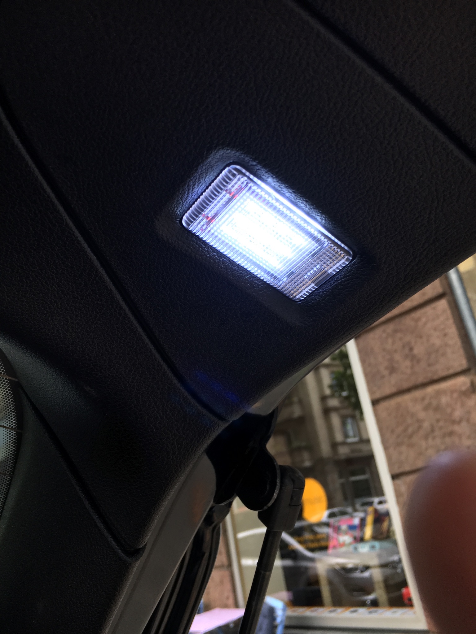 So ich mach mal hier weiter. Hatte ja schon LED verbaut. Die passen auch wunderbar in die Halterung von der Größe her, haben aber das Problem das man jede einzelne sieht. Aber die Chinesen sind da ja immer am erfinden. 5 Stück bestellt für 2,50€. Handschuhfach, 2x Türen und 2x Kofferraumbeleuchtung. Aber man muss Anpassungen vornehmen. Zange und Feile fertig. Vorher und nachher ![]()