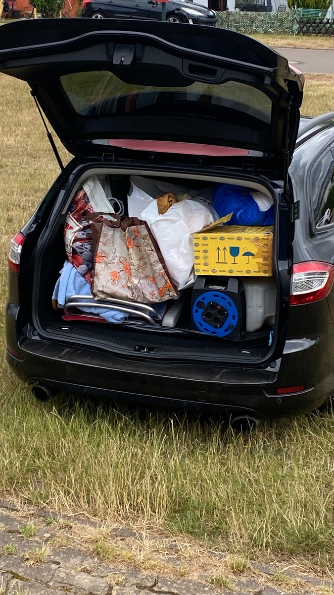 Da ich nicht mehr im Zelt schlafe, sondern im Bungalow, reicht das im Kofferraum für 3 Tage.