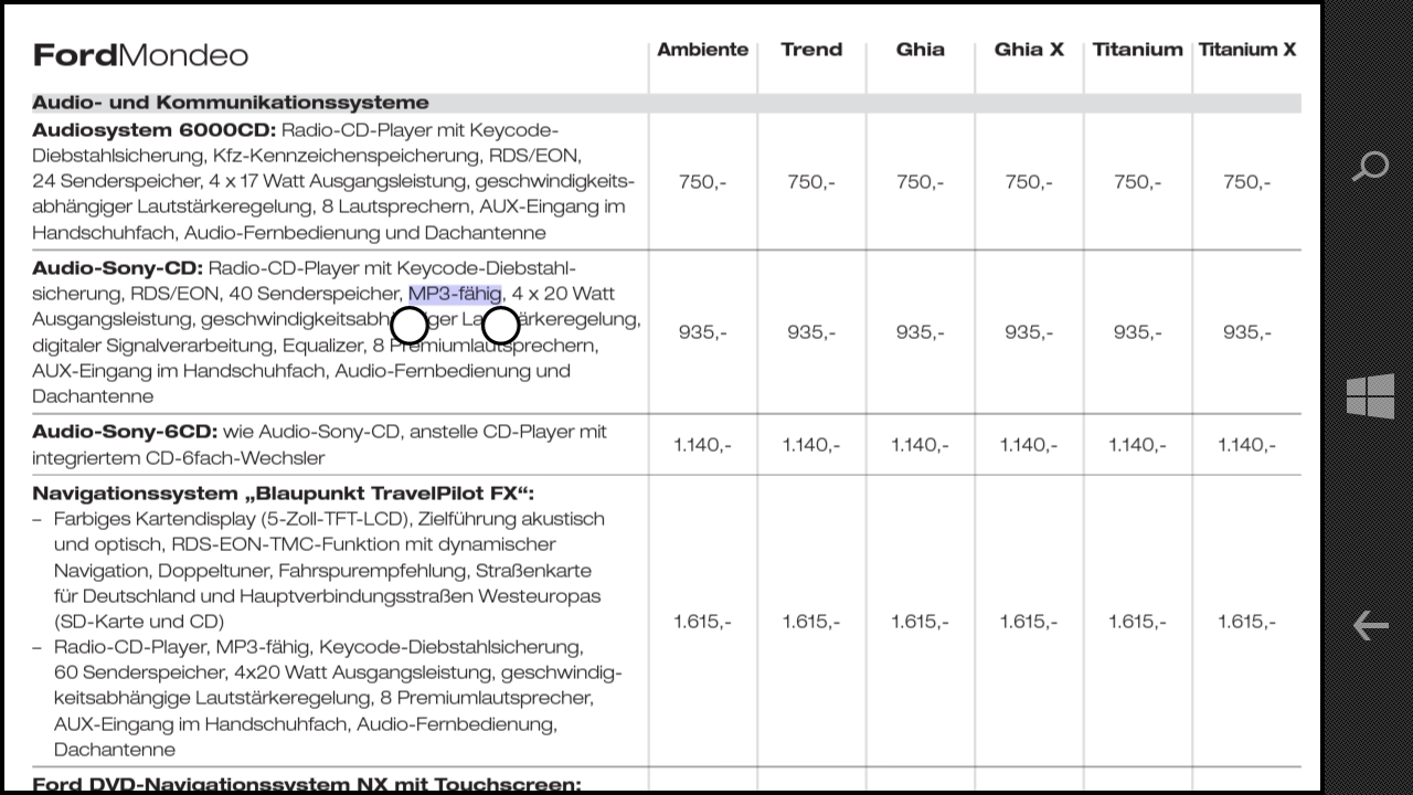Wobei der 1. Screenshot aus der von 4.4.2008 ist, bei der aus 2009 (attached) war das Radio außer beim Ambiente dann schon als Grundausstattung serienmäßig, aber immernoch ohne MP3.