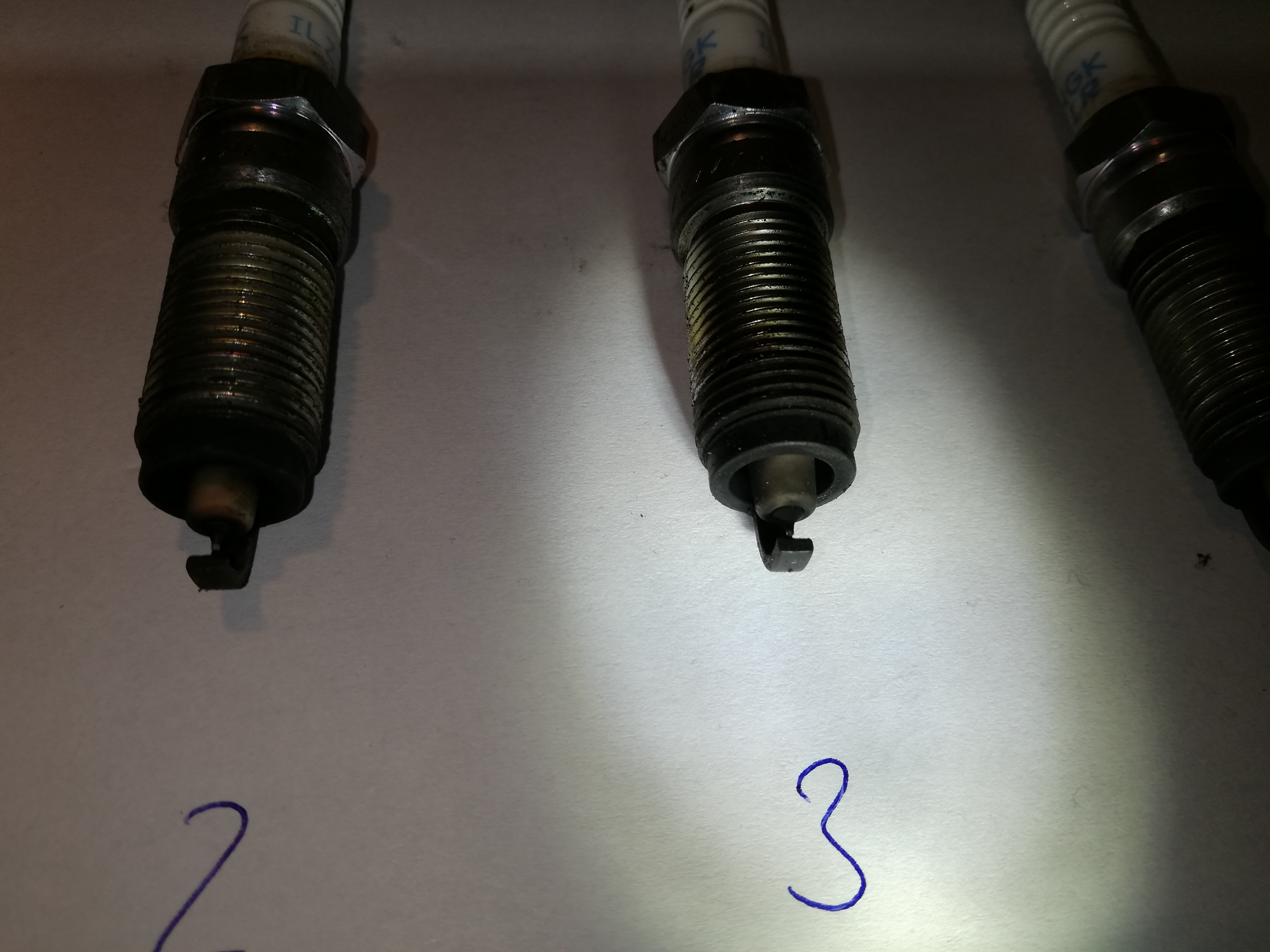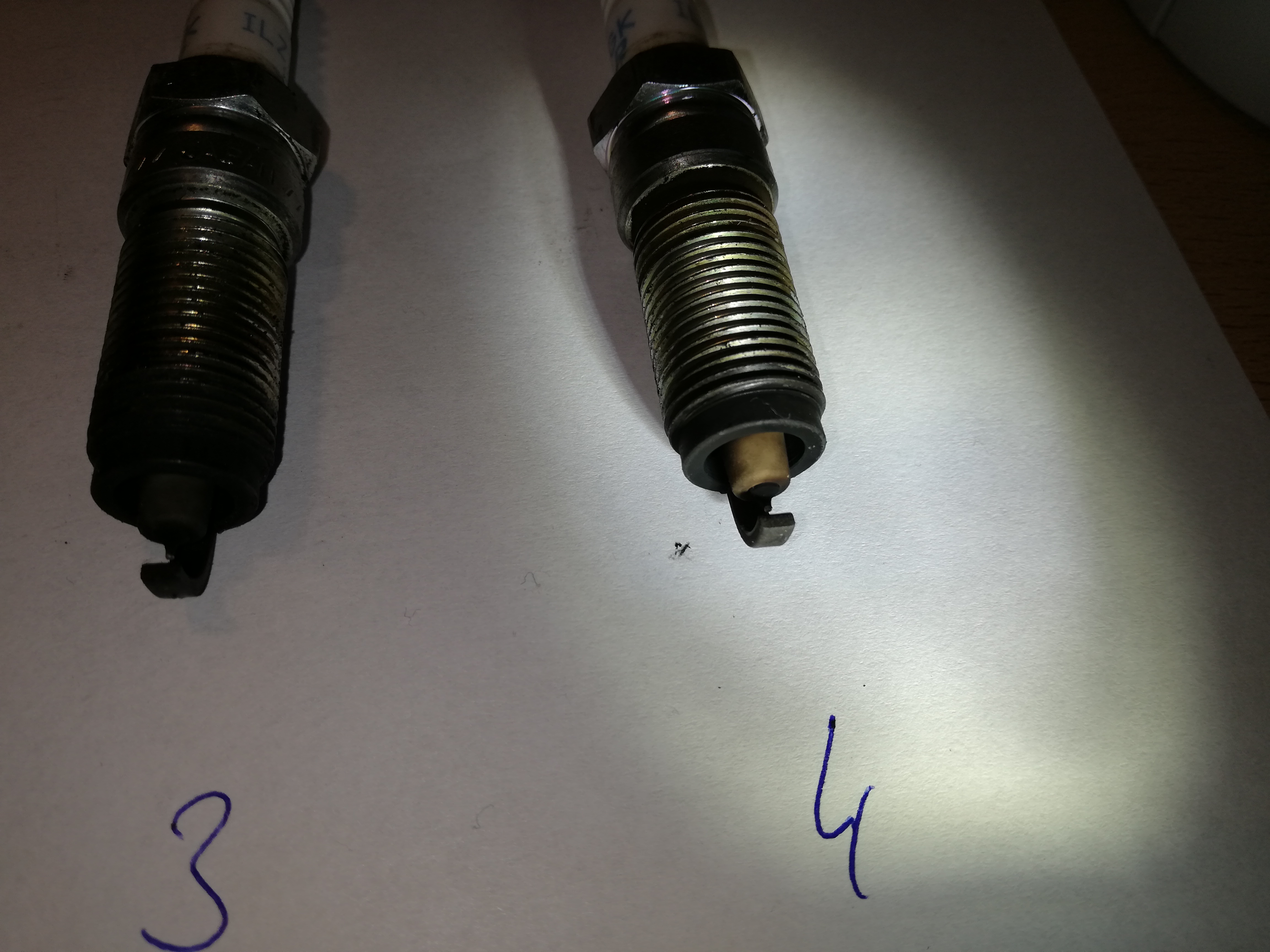 So, 3 von 4 Zündkerzen gingen problemlos raus. Alle sahen gut aus. Die 4. will partout nicht raus und wir vermuten hier ein Problem. Die Werkstatt muss sich das anschauen und versuchen, die rauszubekommen.