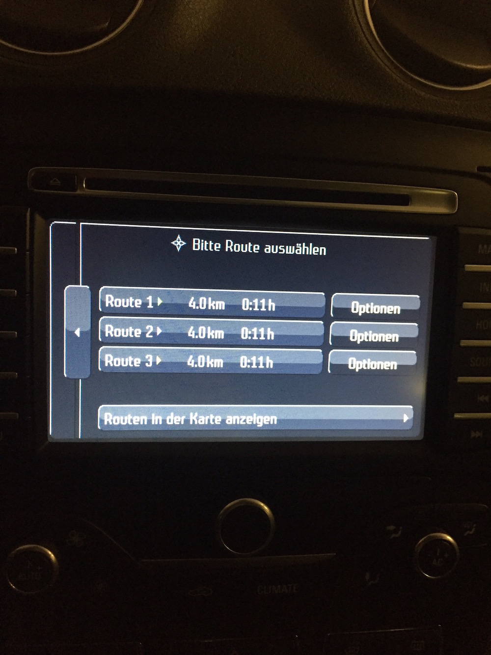 Wird hier die Option Alternativrouten deaktiviert ist nur noch die erste Routenoption aktiv und die Navigation wird direkt gestartet.