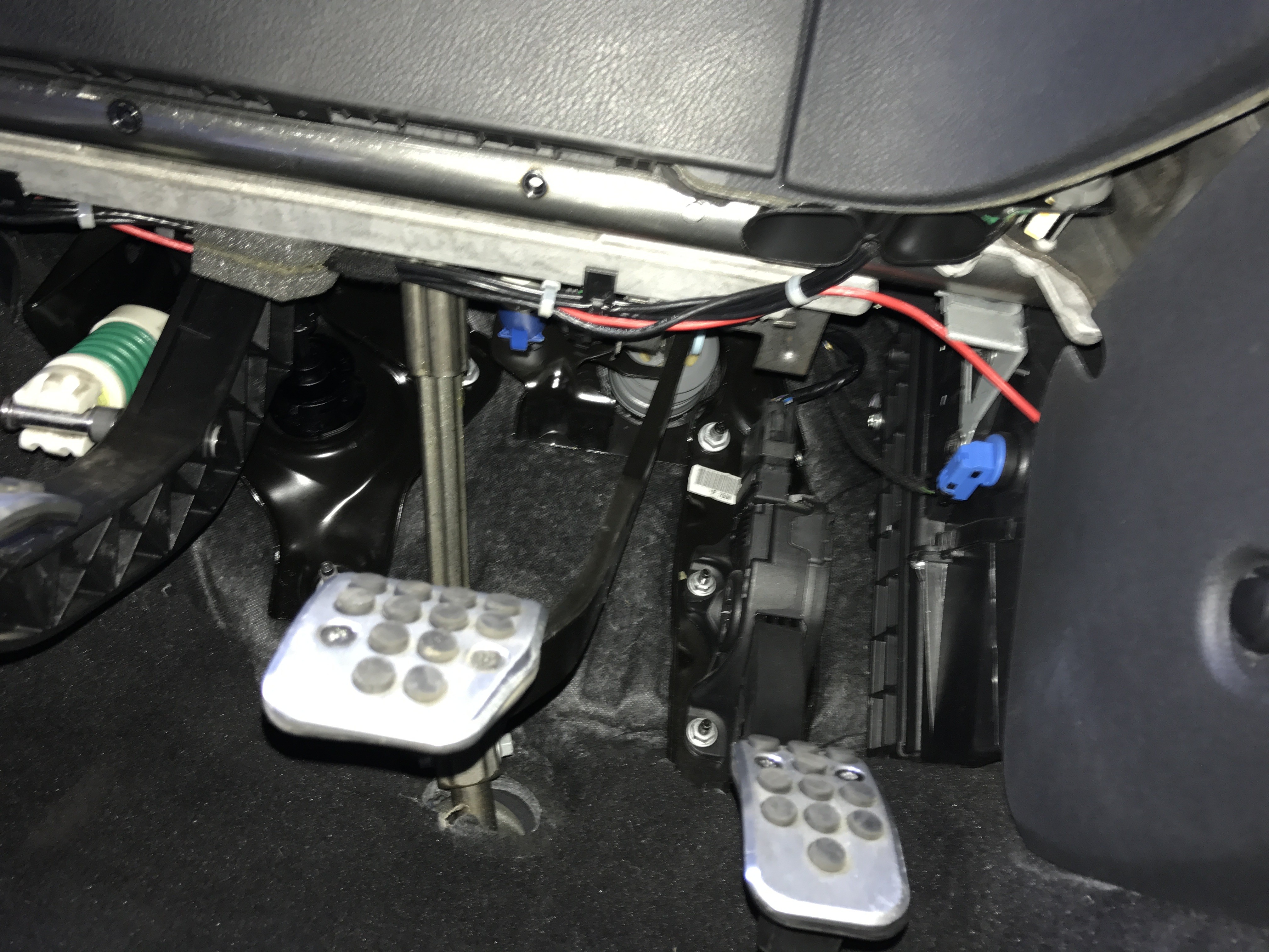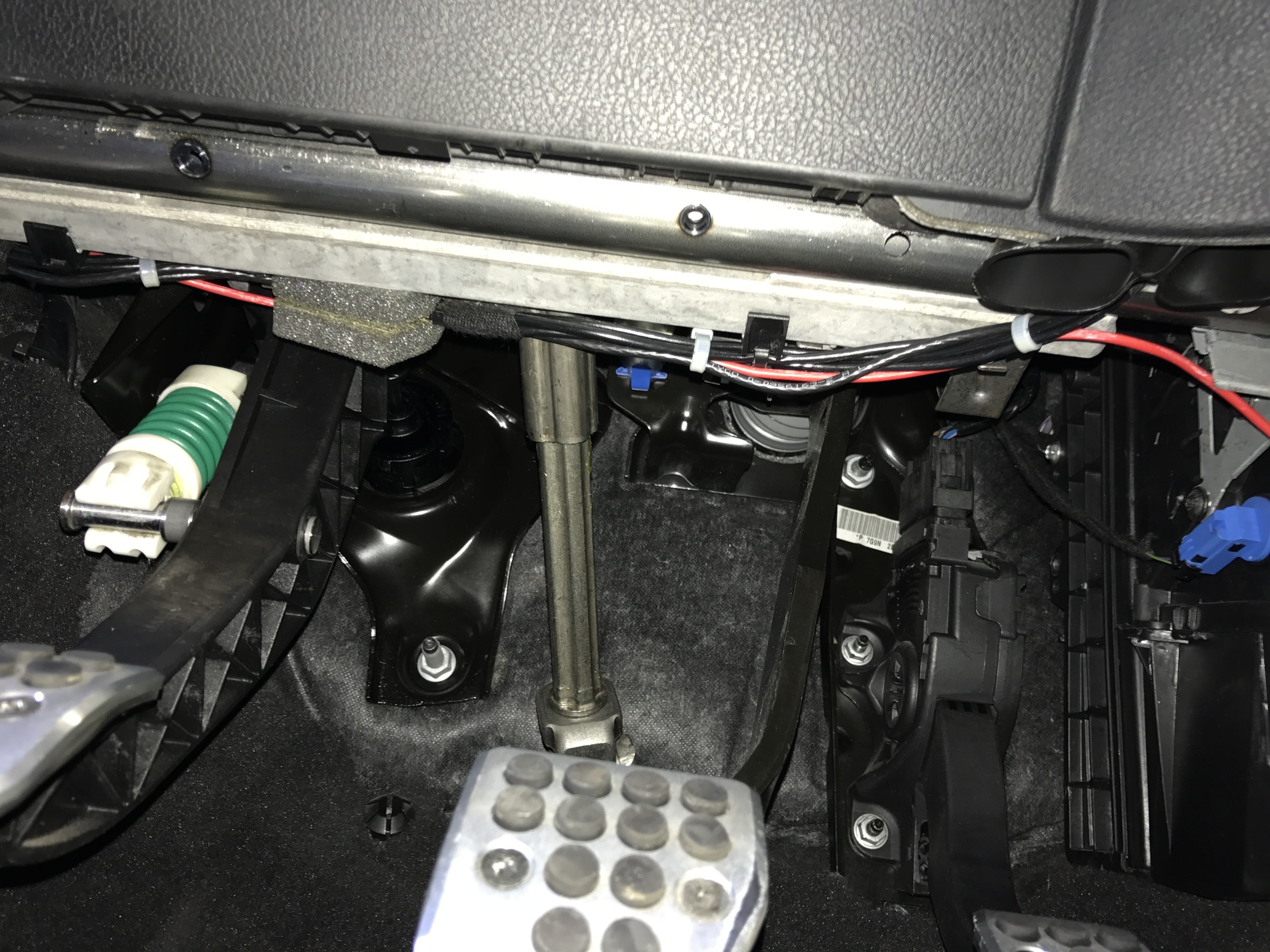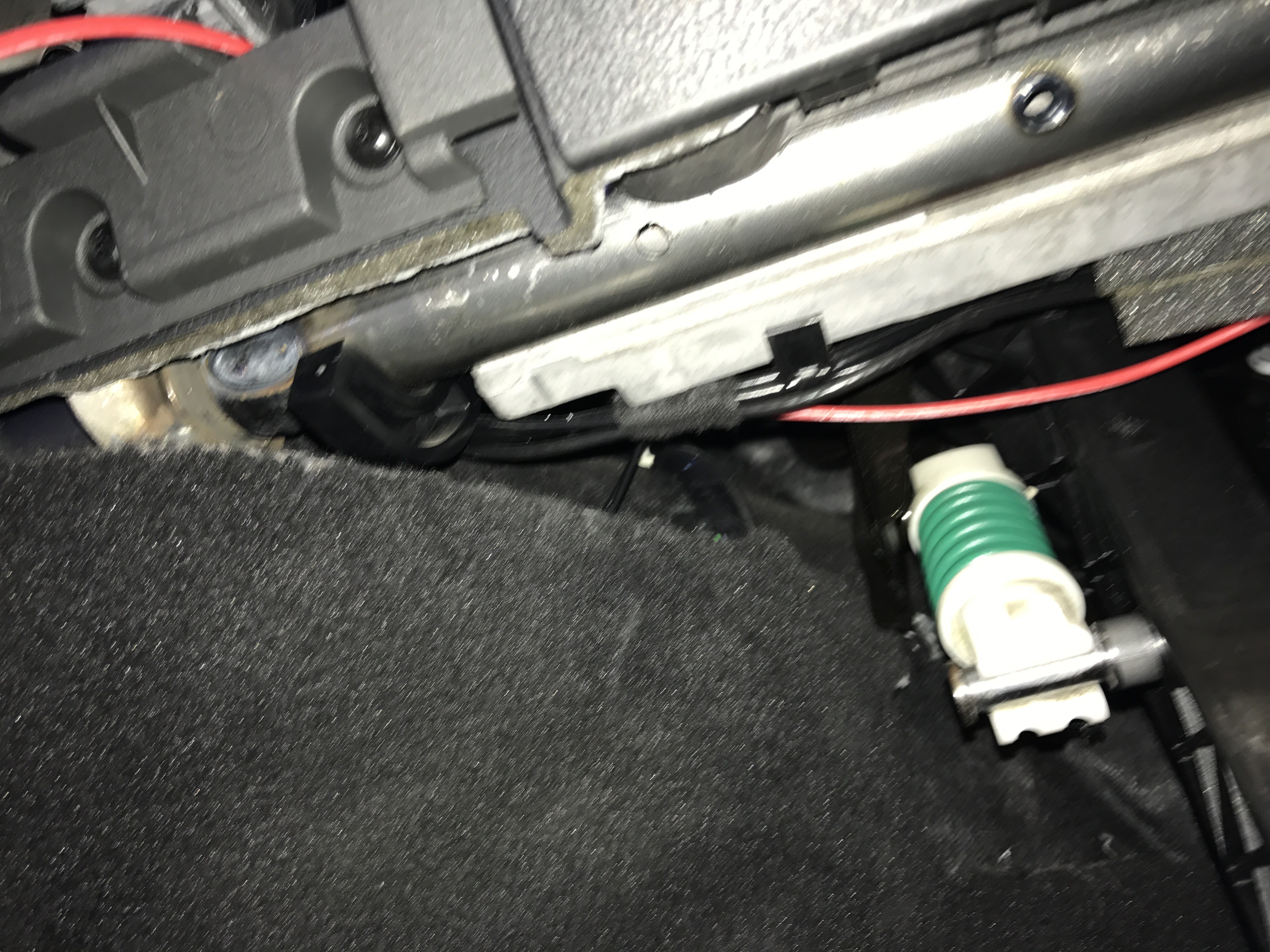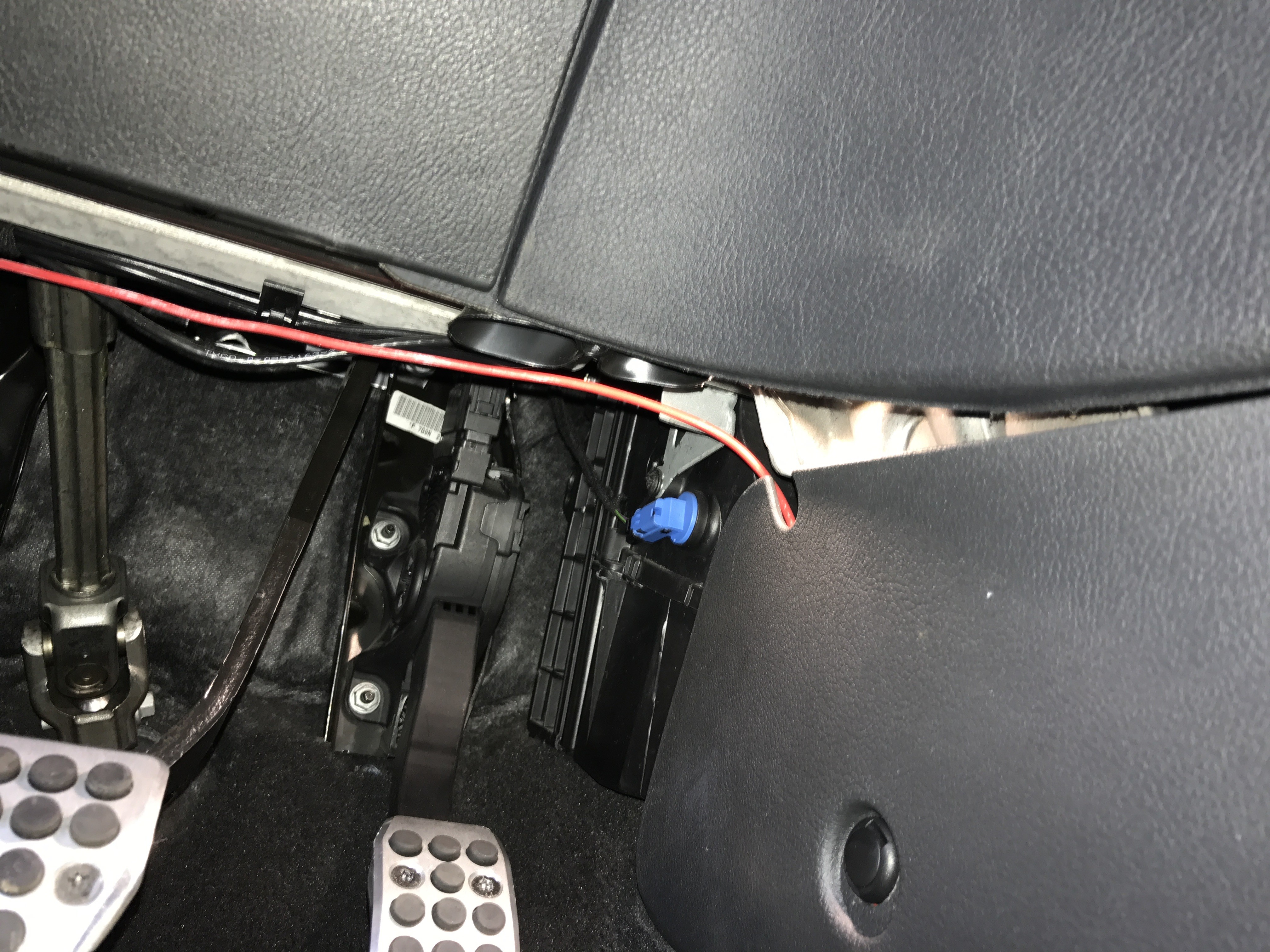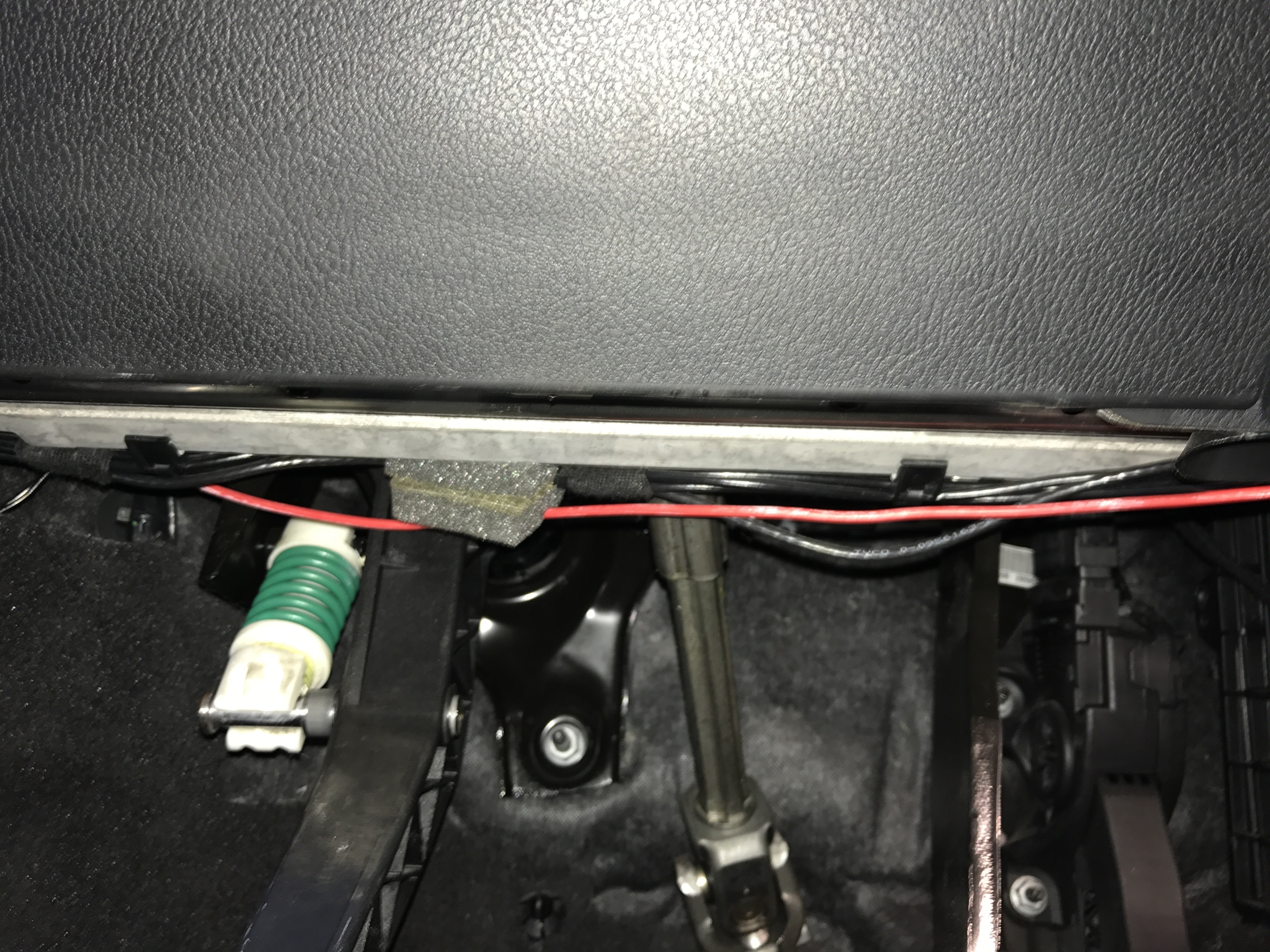 Vorne angekommen dann oben unterhalb des Armaturenbretts entlang. Dort liegen auch schon andere Kabel.