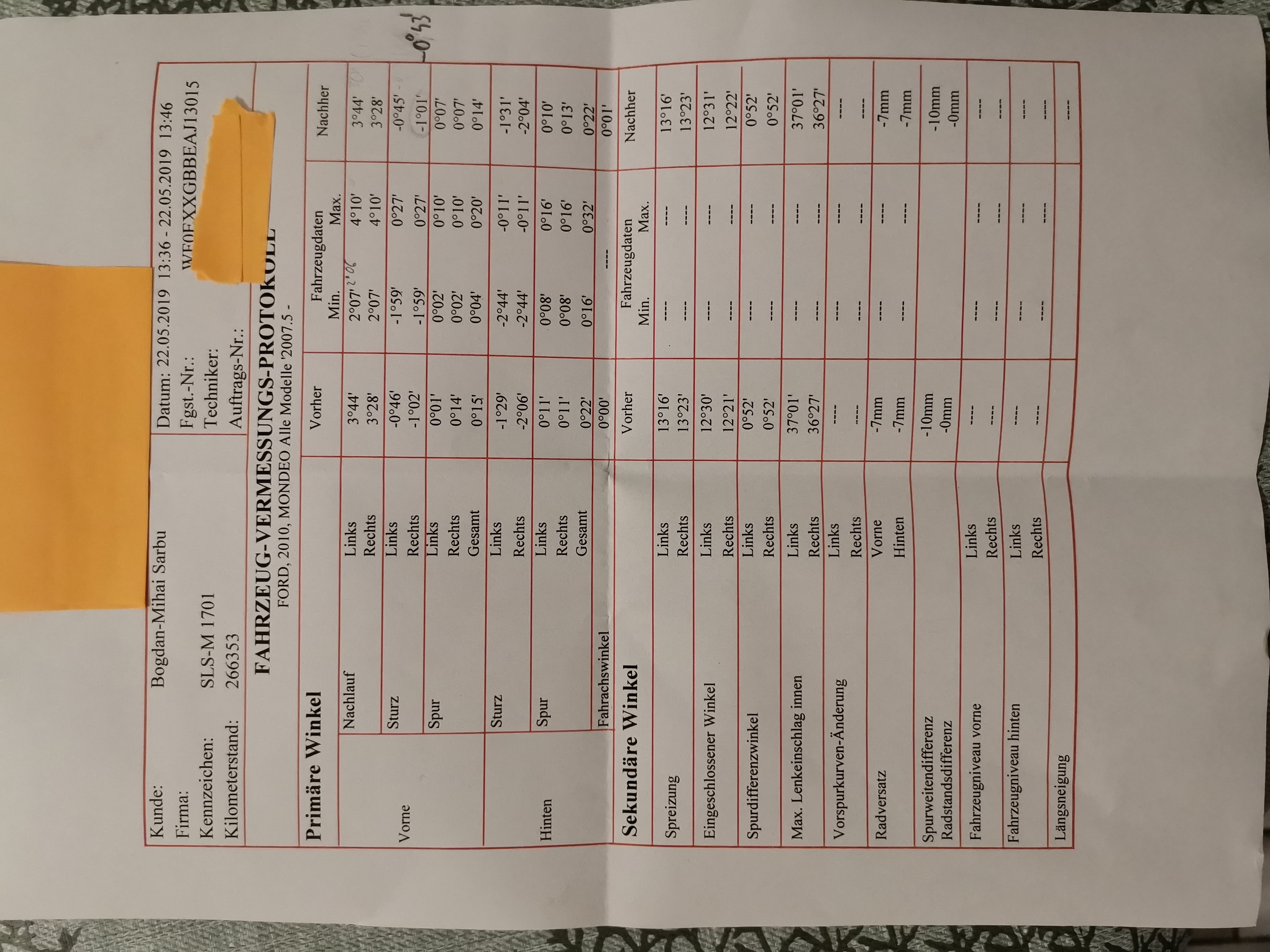 Die haben die Achsvermessung (siehe Photo) gemacht und haben gesagt währe alles ok beim Fahrwerk.